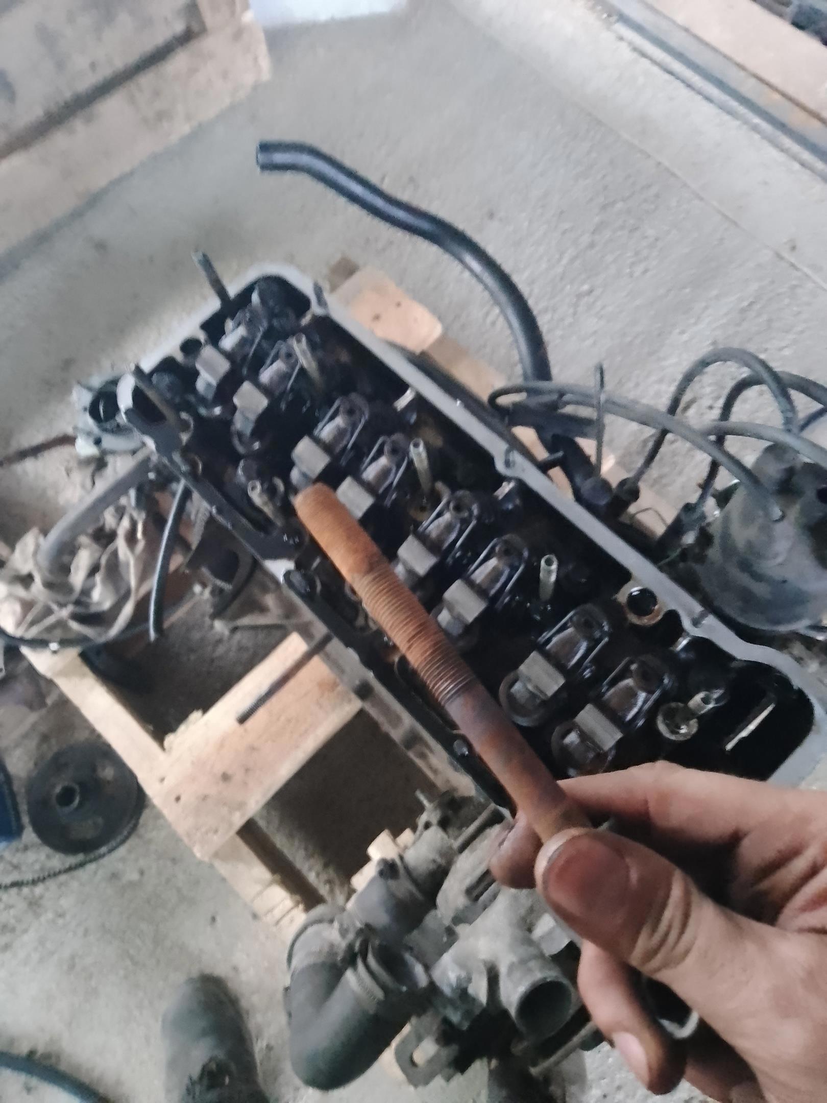 Такого я ещё не видел. Очень ржавый болт, крепящий головку к блоку. Его смог отвернуть только наш огромный гайковёрт (БФГ9000).