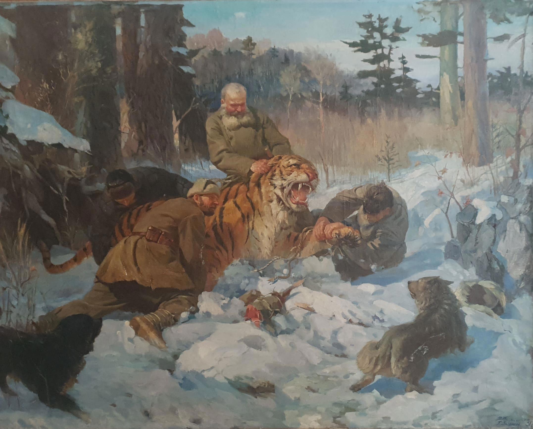 Картина советского художника Якова Куриленко «Тигроловы»