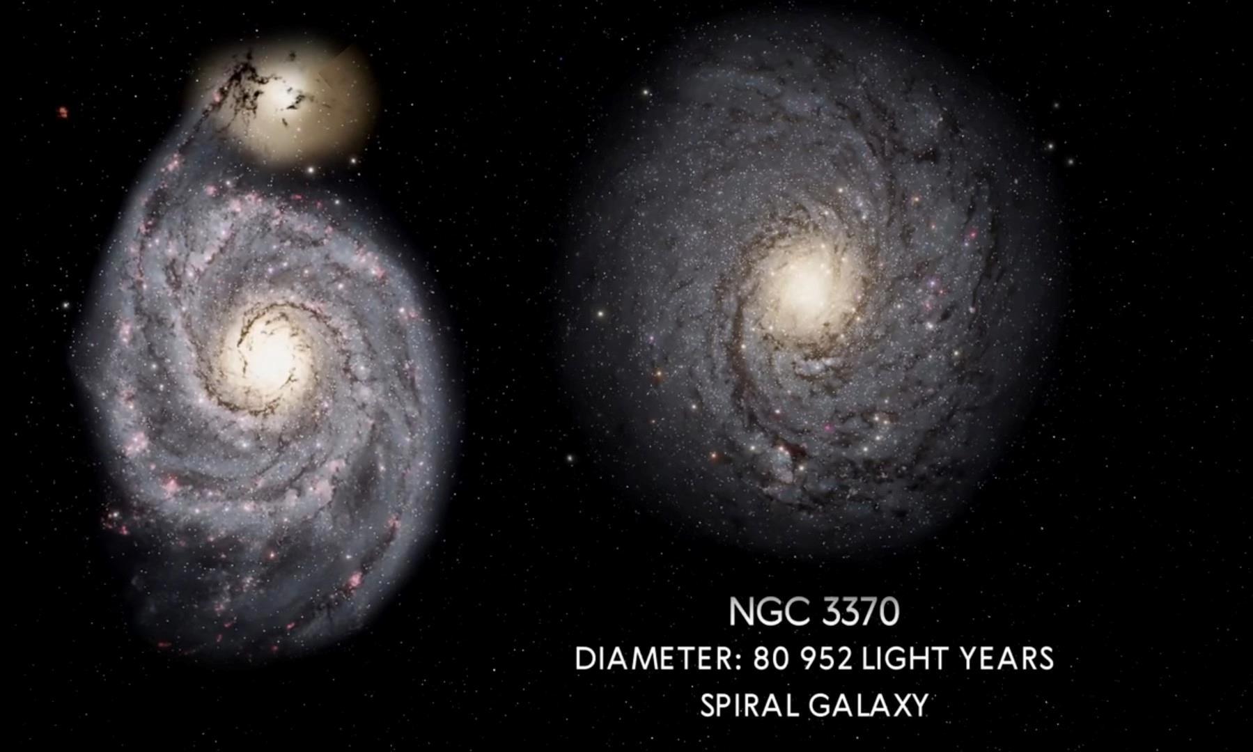 Галактики отличаются большим разнообразием: среди них можно выделить сфероподобные эллиптические галактики, дисковые спиральные галактики, галактики с перемычкой (баром), линзовидные, карликовые, неправильные и т. д.Перейти к разделу «#Морфология». Если же говорить о числовых значениях, то, к примеру, их масса варьируется от 0,5 ⋅106 масс Солнца у карликовых галактик (таких как Segue 2) до 2,5⋅1015 масс Солнца у сверхгигантских галактик (таких как IC 1101), для сравнения — масса нашей галактики Млечный Путь равна 2⋅1011 масс Солнца.