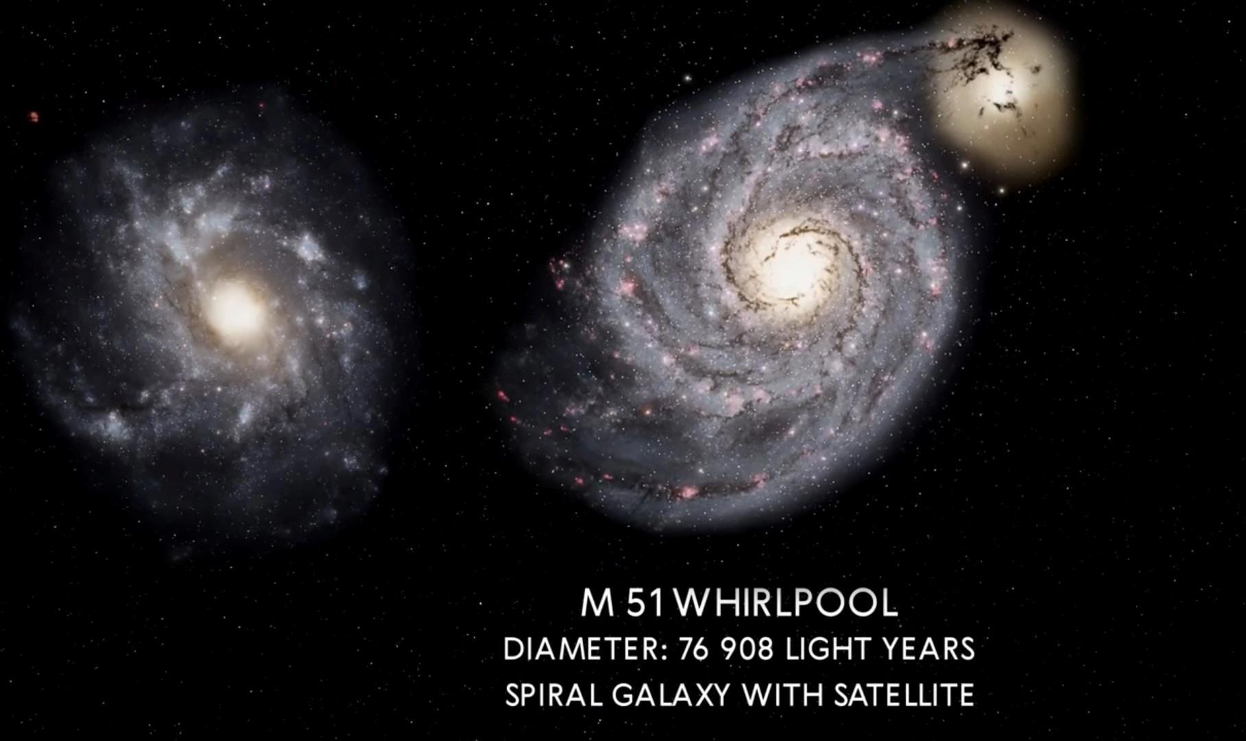 Мессье 51 (Водоворот) или М51 (NGC 5194/5) – спиральная галактика в созвездии Гончих Псов. Находится на удалении от нас на 26,8 миллионов световых лет, а ее диаметр – 87 000 световых лет.