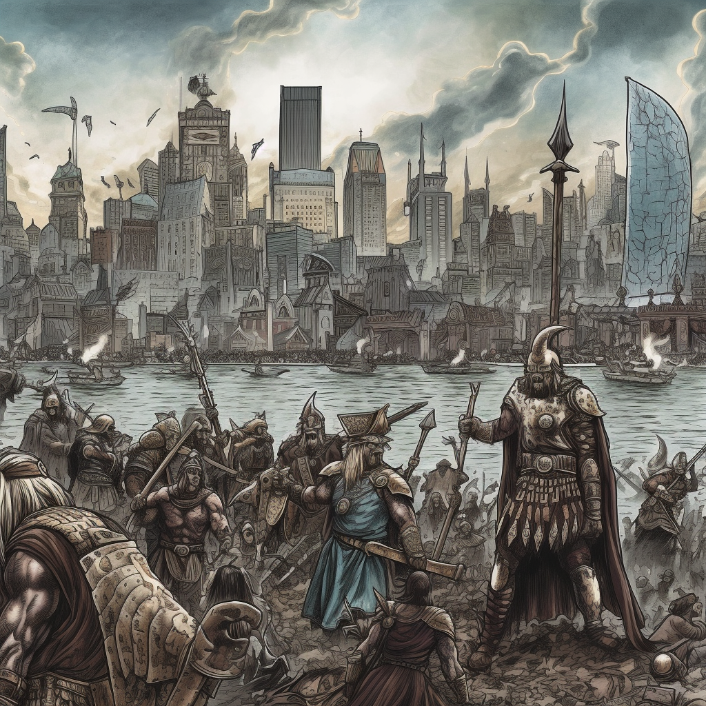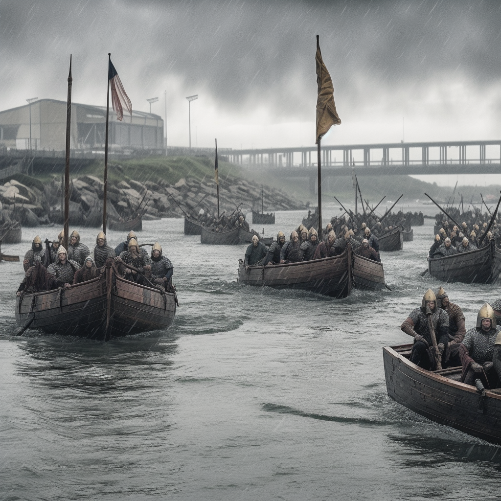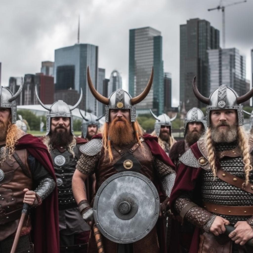 Викинги атакуют город. По этому запросу нейросеть предложила вариант захвата современного города. Причем с моря, хотя в книжке с суши.
