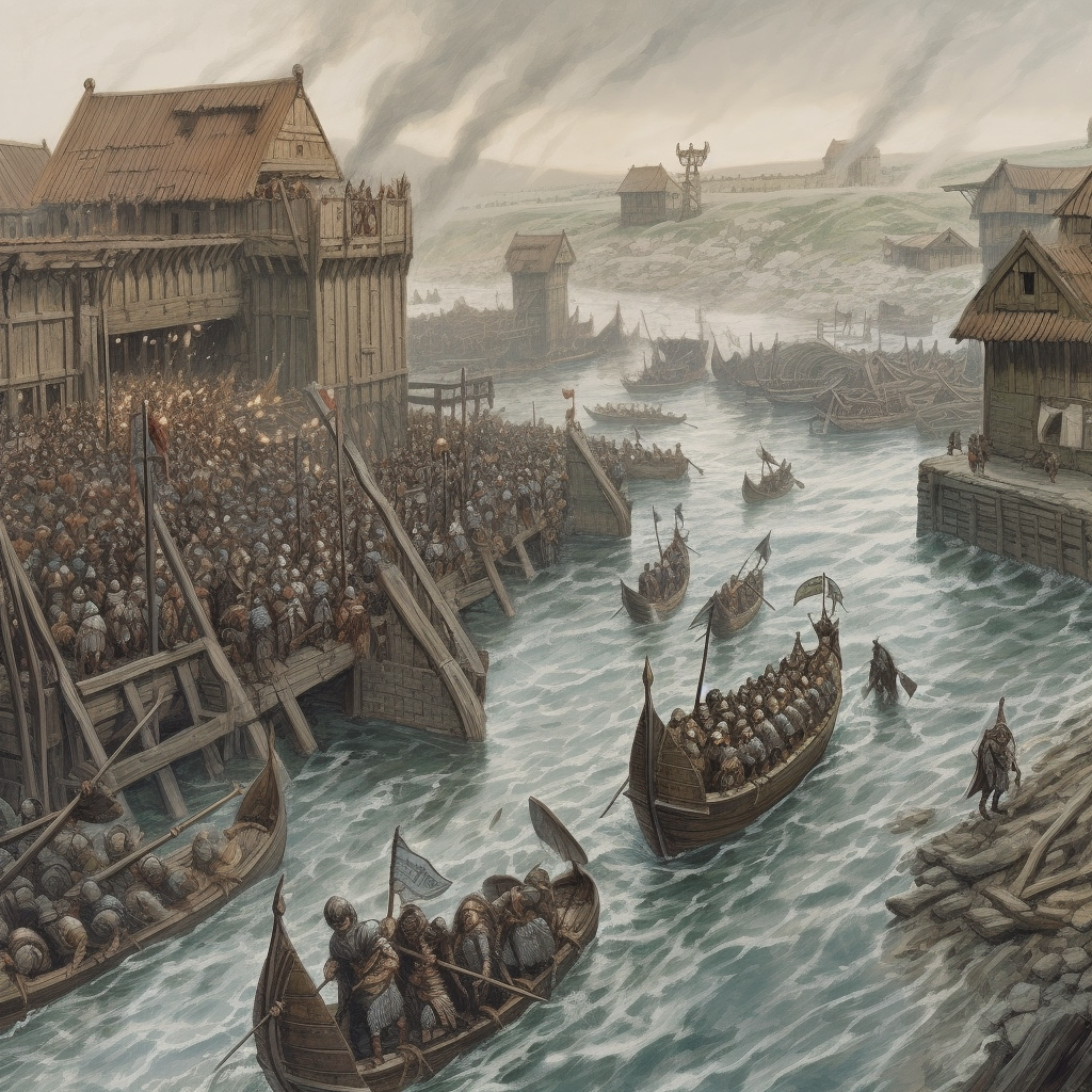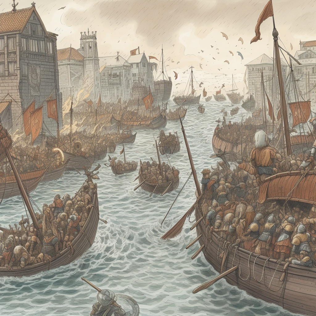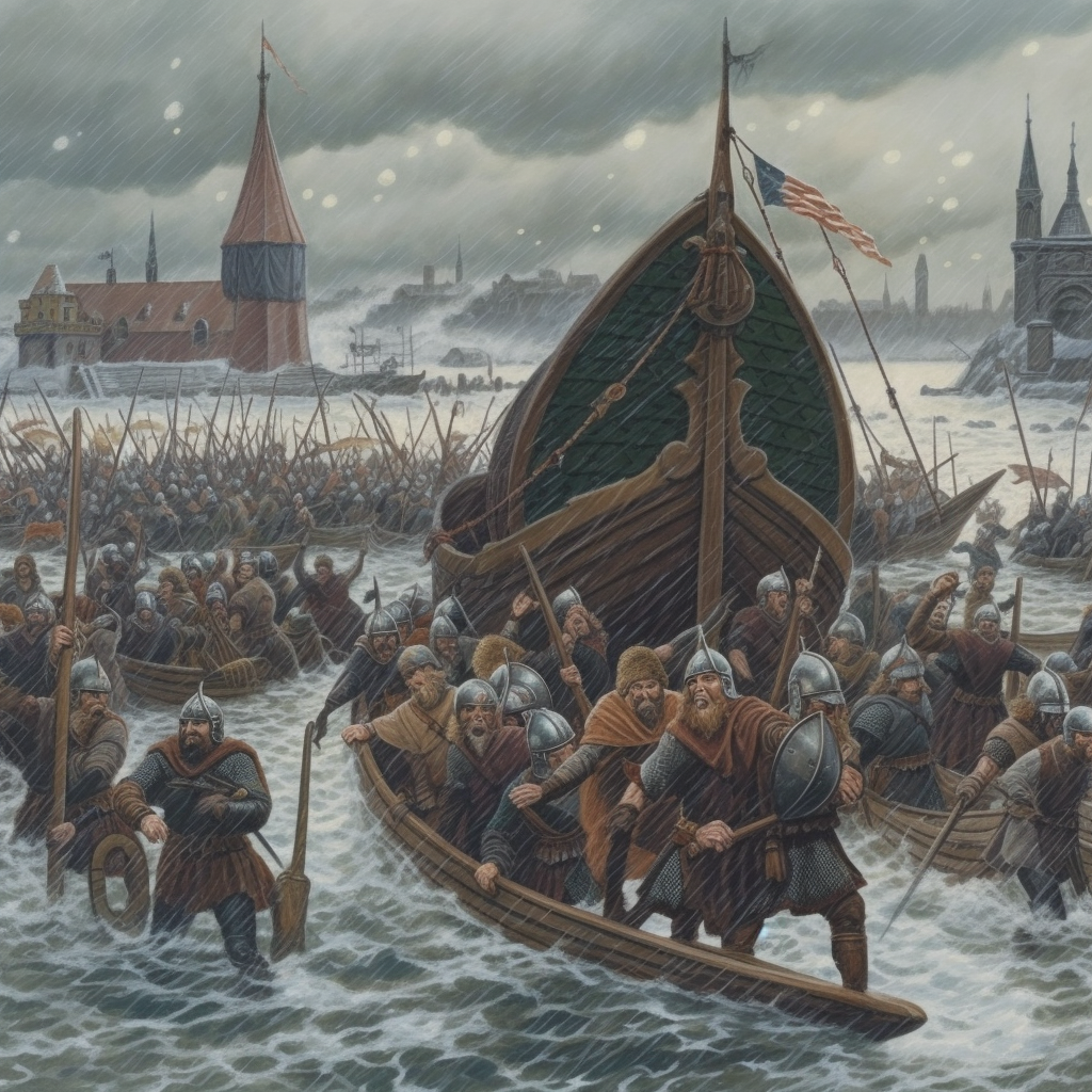 Викинги атакуют город. По этому запросу нейросеть предложила вариант захвата современного города. Причем с моря, хотя в книжке с суши.
