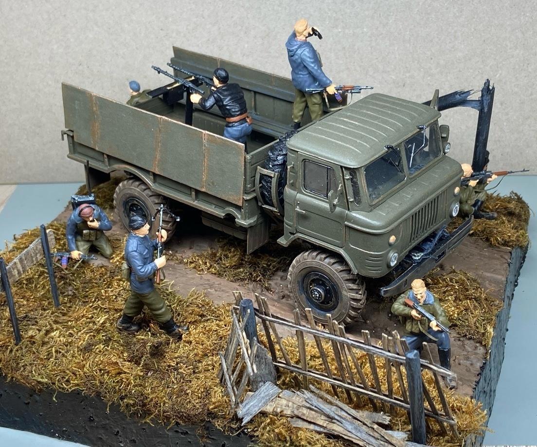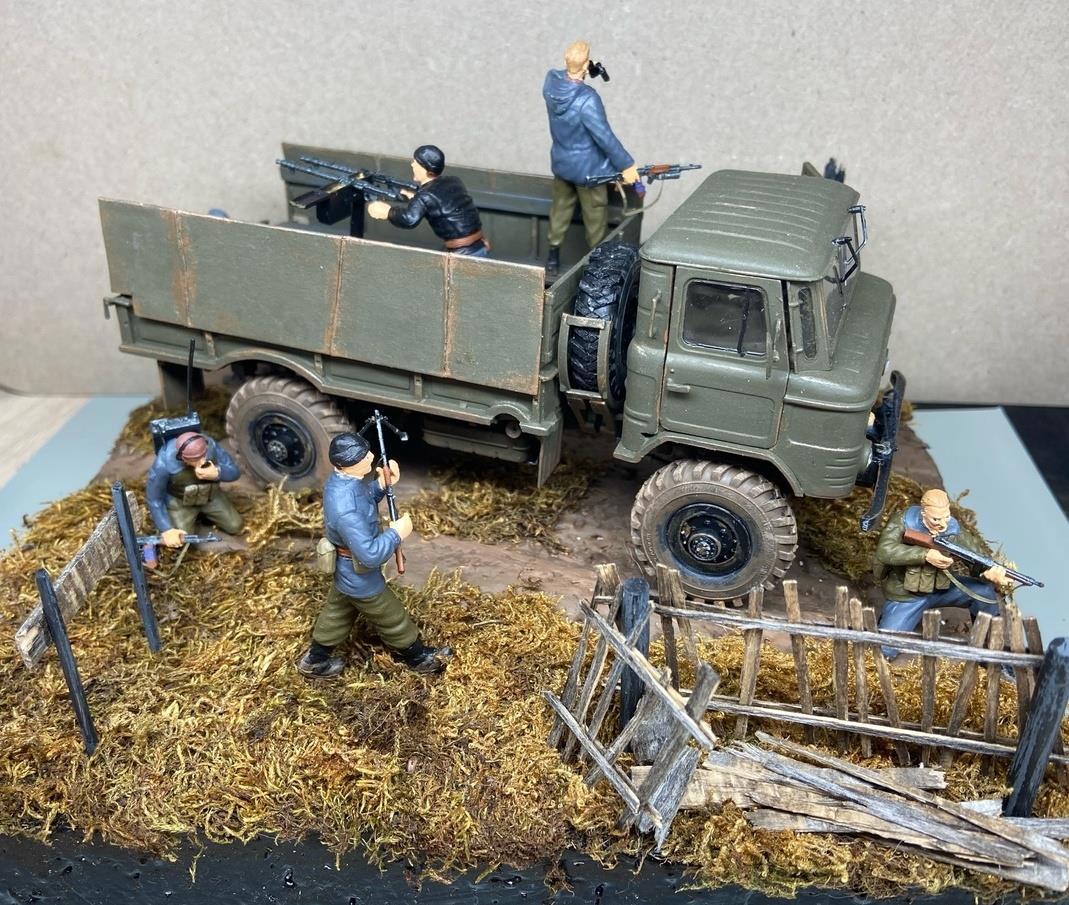 Автор: Николай Владимирович БеляевНу что ж, эпопея с диорамой по "Змеиной осени" подошла к концу. Чуток обгажено напоследок - как раз купил краску с романтичным названием "земля" (пошла на пачкание сапог и дна кузова машины).