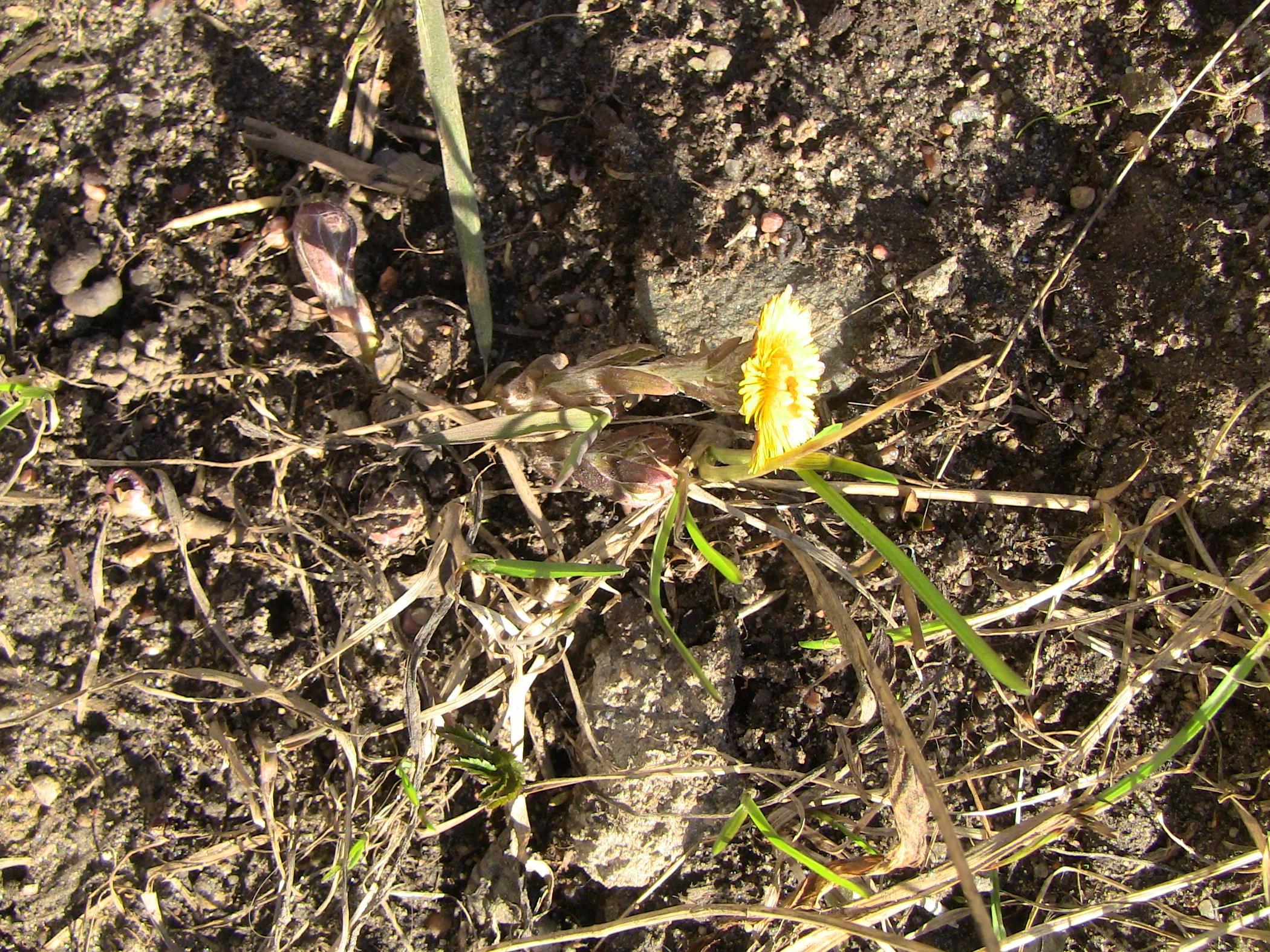 А это пока одинокий цветок мать-и-мачехи, но скоро их станет больше. Растение цветёт до распускания листьев.
