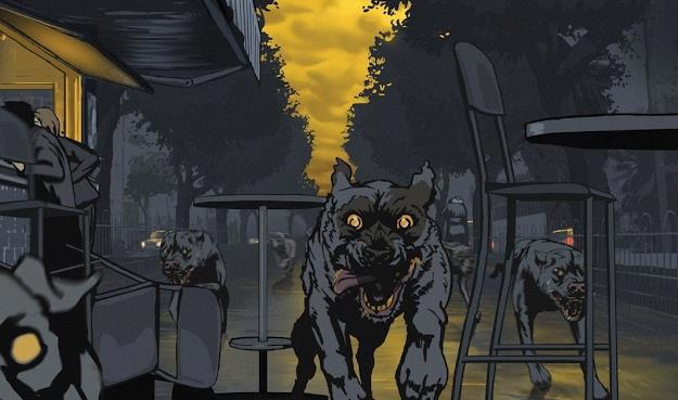 По улице, не взирая на пешеходов, машины, столики у входа в кафе бежали собаки. Стая достаточно голодных, злых, хищных созданий не смотря на помехи направлялись вперёд, ведомыми лишь своими внутренними инстинктами хищника. Они выбегали отовсюду, соединяясь в единое целое. Серьёзный отряд, которых помотала жизнь на шерсти которых оставались шрамы двигалась вперёд. Их объединяло стремление достичь лишь одного человека. Встав у небольшой многоэтажки, они, глядя в верхнее крайнее окно начали лаять, смотря озлобленным взглядом на смотрящего на них человека. Двадцать шесть собак.