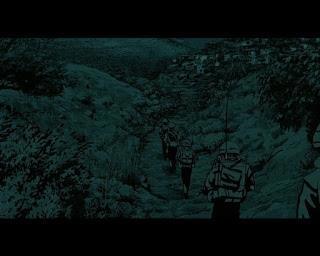 Ночь. Горная местность. Небольшой поисковый отряд пробирался сквозь небольшую тропу, постоянно озираясь по сторонам. Двигались они по одному человеку через каждые условленные десять метров, осматривая при этом всё, что попадётся им на глаза.