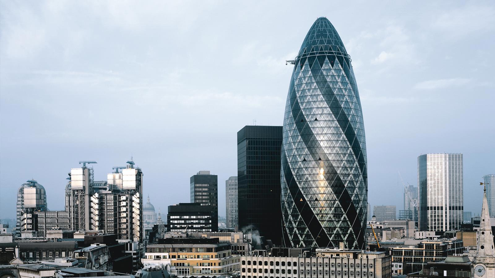 Swiss Re Building, по адресу 30 St Mary Axe в Лондоне - Gherkin, то бишь "Огурец":