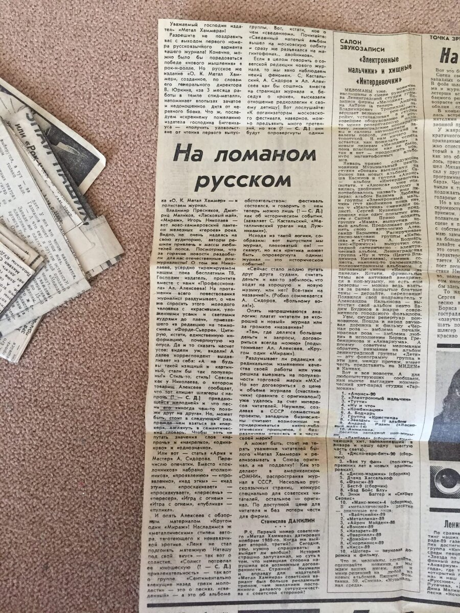 Автор: КТУЛХУКрик души по поводу выхода первого номера советского Metal Hammer'а. Негодование, которое, наверняка в те годы разделяли многие советские металлисты. Статья была опубликована в ленинградской газете "Смена".