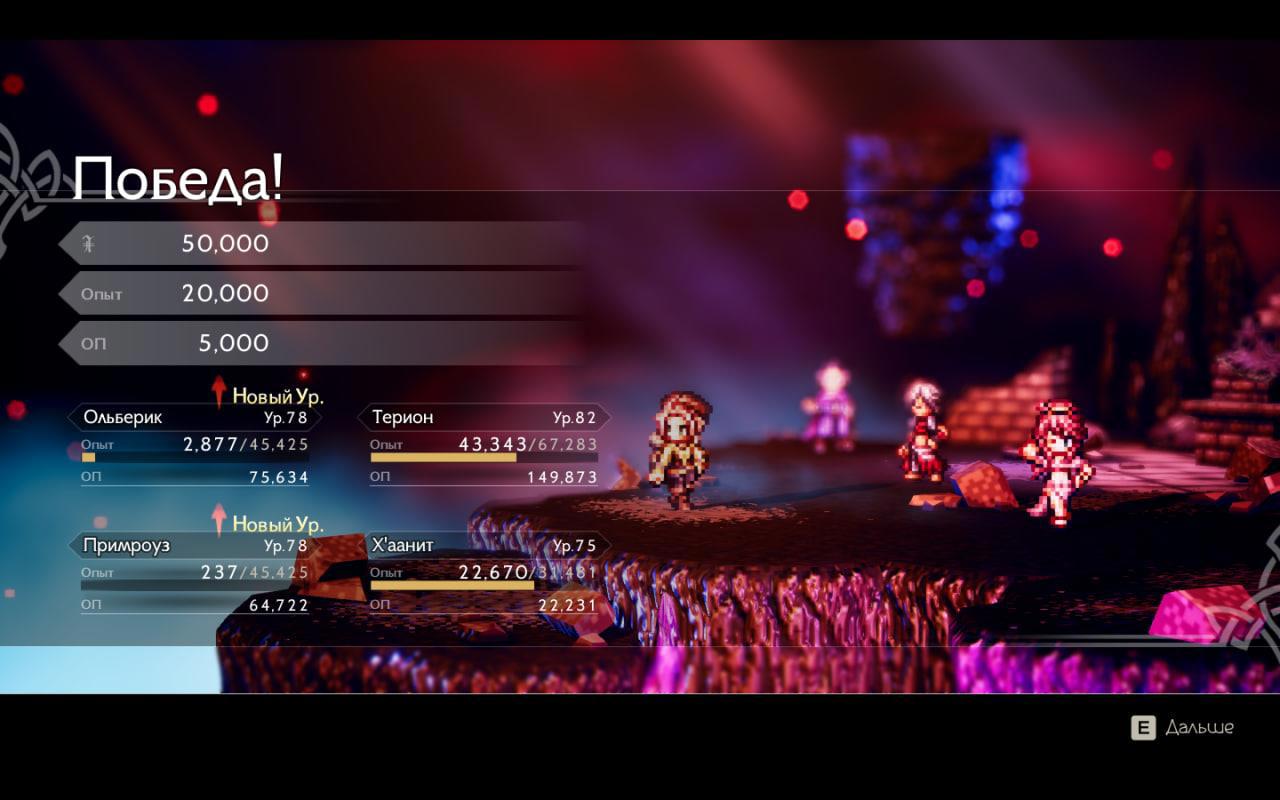 И радовался до того момента, пока мне брат не закинул подгон в виде свежей, на тот момент, jrpg "Octopath traveler" - это была любовь с первого взгляда! Там было всё, по чему я так сильно соскучился за эти годы голодания без старой классики! Всё, да не было адекватной концовки. Финала, который сплетёт все восемь историй (охуительных историй, я вам скажу!) к финальной схватке. Я и так подозревал, что намёки на последнего босса в игре были всю дорогу в побочных и основных квестах, что вся история связана. Очень легко это пропустить, если читать диалоги на отвали. Но я читал как обычно - вдумчиво.