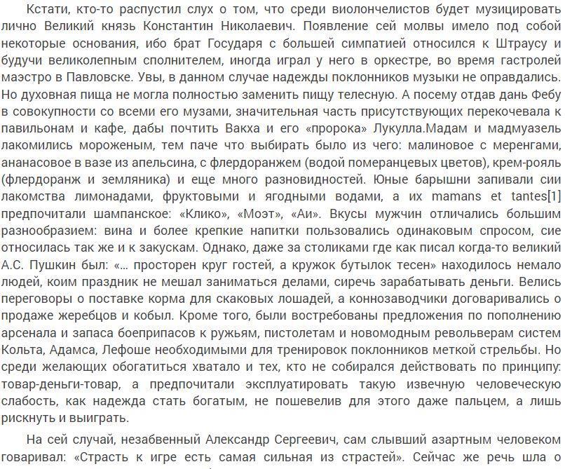 Первые главы зачем-то подробно знакомят нас с будущими главными героями, подробно описывается даже то, как проходила защита докторской диссертации, их мысли, прошлое и настоящее. Очень подробно, весьма бессмысленно. Это вместо того, чтобы потратить эти усилия на раскрытии для читателя деталей жизни реципиентов - вел. князя Михаила Николаевича (младшего брата Николая I), и его 4го сына - вел.кн. Александра (более известный мало-мальски изучавшим историю как Сандро). Единственное, что приходит на ум, зачем авторы крайне муторно и подробно зачем-то поведали нам последние дни современной нам жизни главных героев - это чтобы читатель точно понял, что ГГ (или авторы?) за консерватизм, они против либерастии, и вообще ультра-патриоты. Идея консерватизма, и ненужной либеральщины эдакой красной линией проходят через весь текст первой книги. Наглая, вечно гадящая англичанка, из-за которой все беды на Руси во все времена - 2ая красная линия.