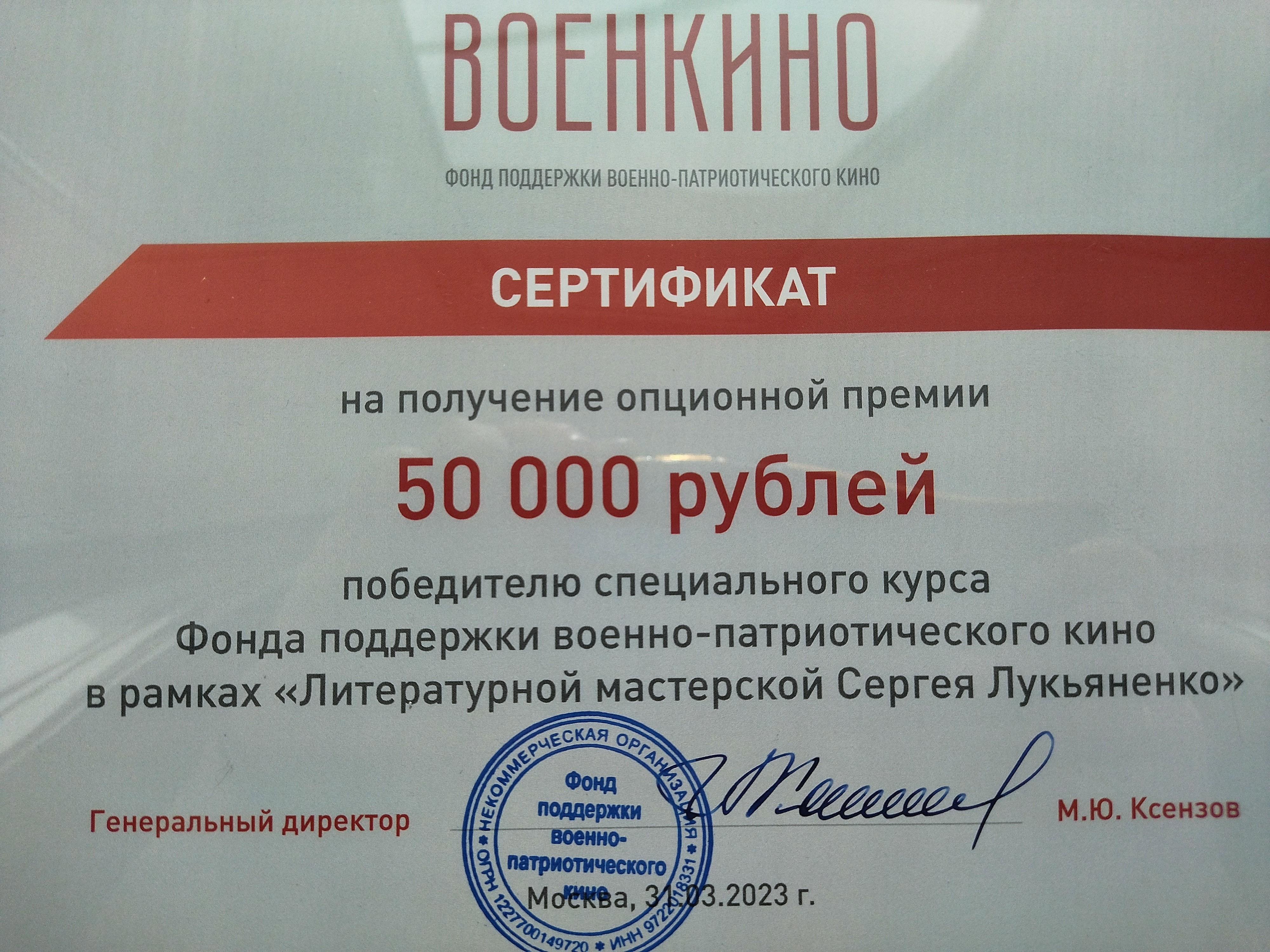 Но это далеко не всё, о чём я хотел бы рассказать. Не хочется постоянно лезть в ленту блогов со своим самопиаром, тем более, речь снова о Фонде поддержки военно-патриотического кино. В этот же день, 31-го марта, на круглом столе, посвящённом вопросам патриотизма в кино и литературе, были подписаны три договора-опциона на возможную экранизацию литературных произведений. Такого рода договоры не гарантируют 100-процентного появления экранизаций. Они закрепляют за «Военкино» право быть первыми в очереди, а авторы получают что-то вроде аванса — небольшой процент от общей суммы, которая будет выплачена в случае выхода фильма или мульта.