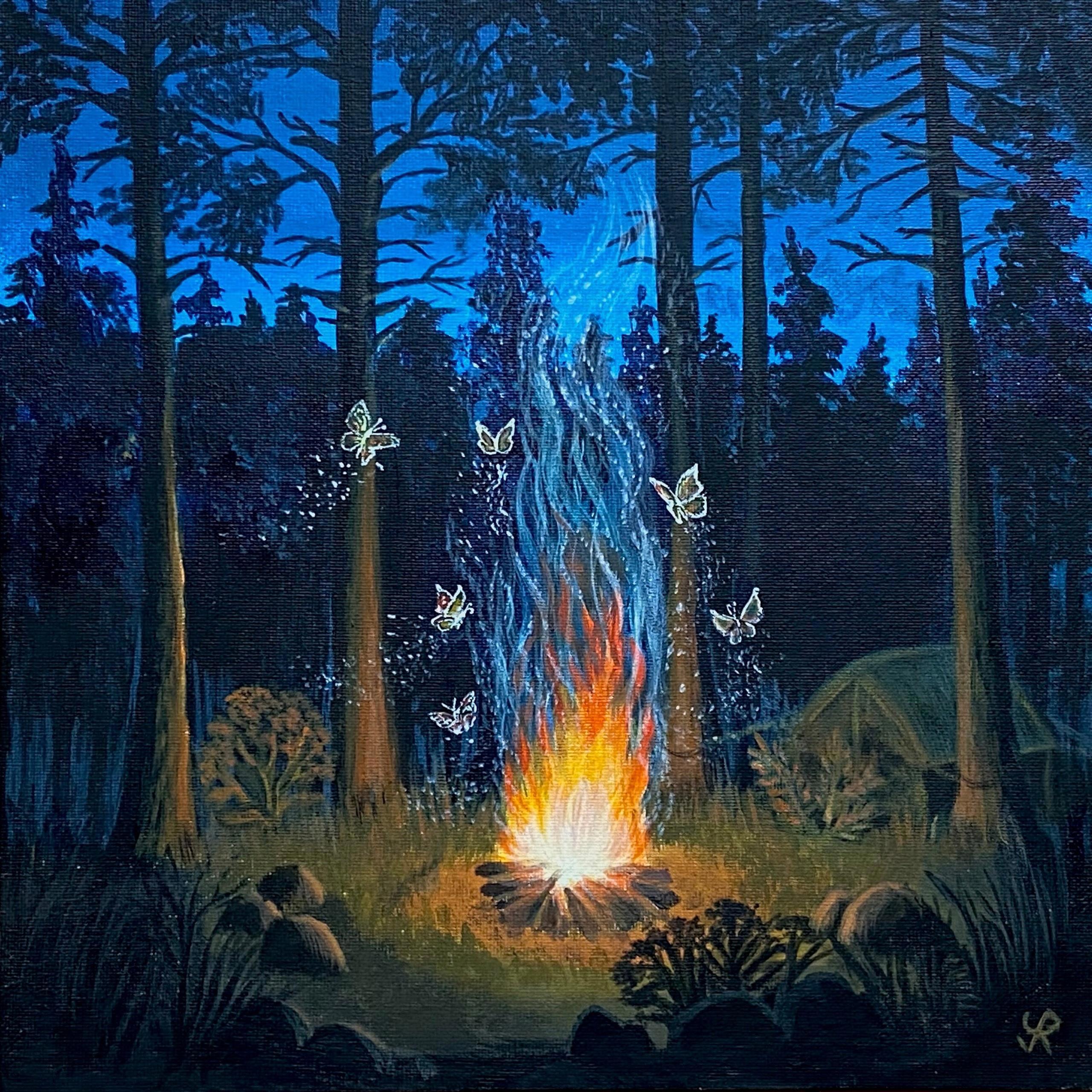 Когда-то много лет назад дедушка моей подруги написал стихотворение о бабочках, привлеченных игрой пламени. Так и родилась идея подарка.
