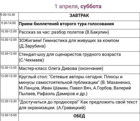 В общем, мы отлично провели врем, и, пропустив Стендап-шоу для сценаристов грудного возраста Сергея Чекмаева и Мастер-класс Олега Дивова, даже успели накидать несколько тезисов на наш круглый стол)