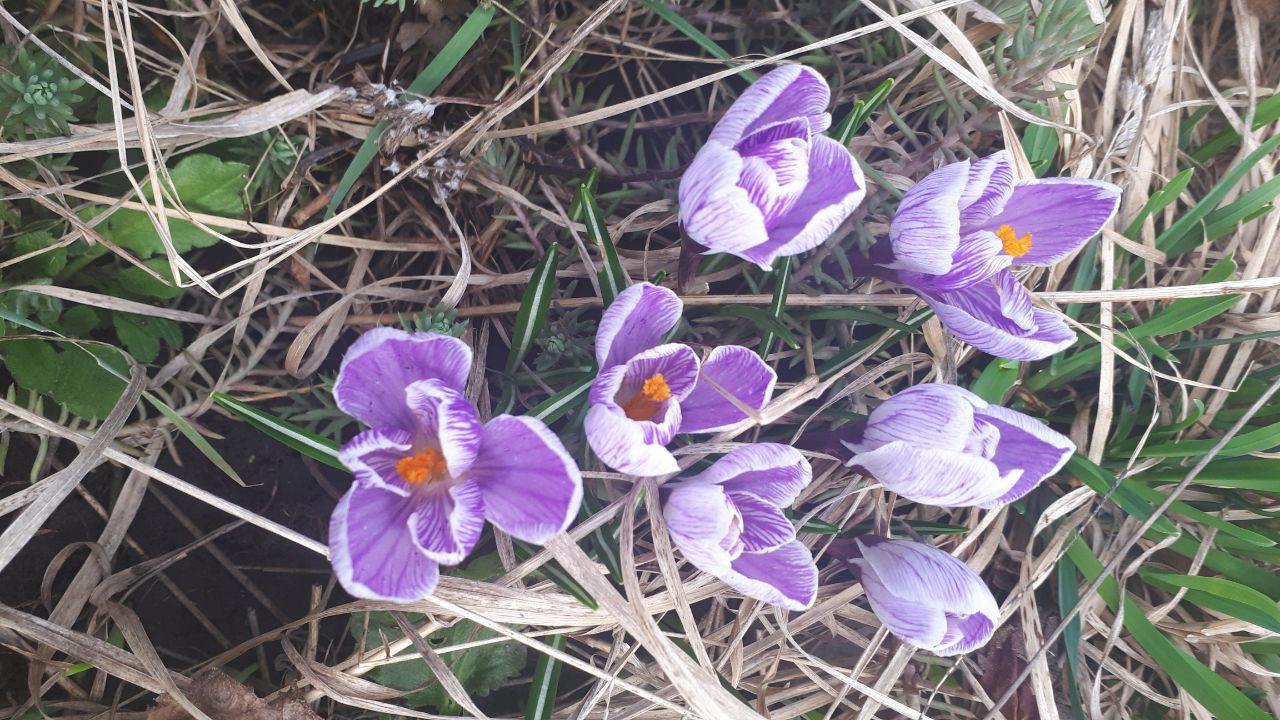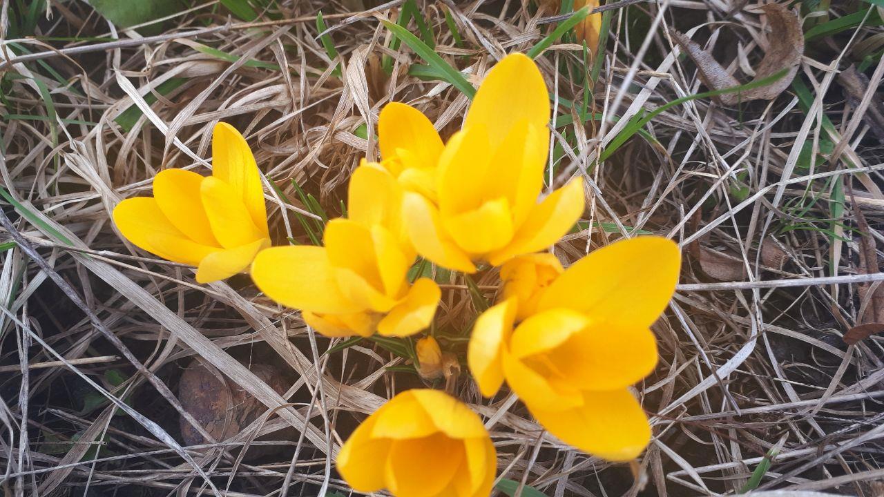 Крокусы. Цвести пытались ещё неделю назад, но погода периодически была "не лётной", и они не цвели. Впрочем, жёлтые уже начинают отцветать.