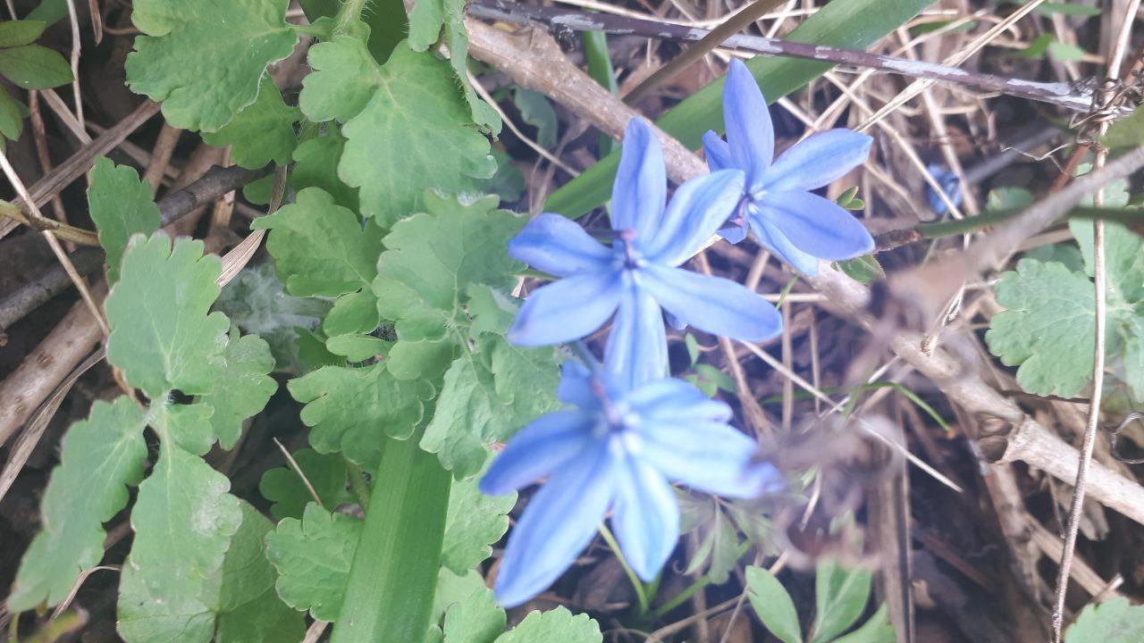 Пролески. Уже отцветают. Как посадил несколько лет назад пару луковиц, так их только две и есть до сих пор...