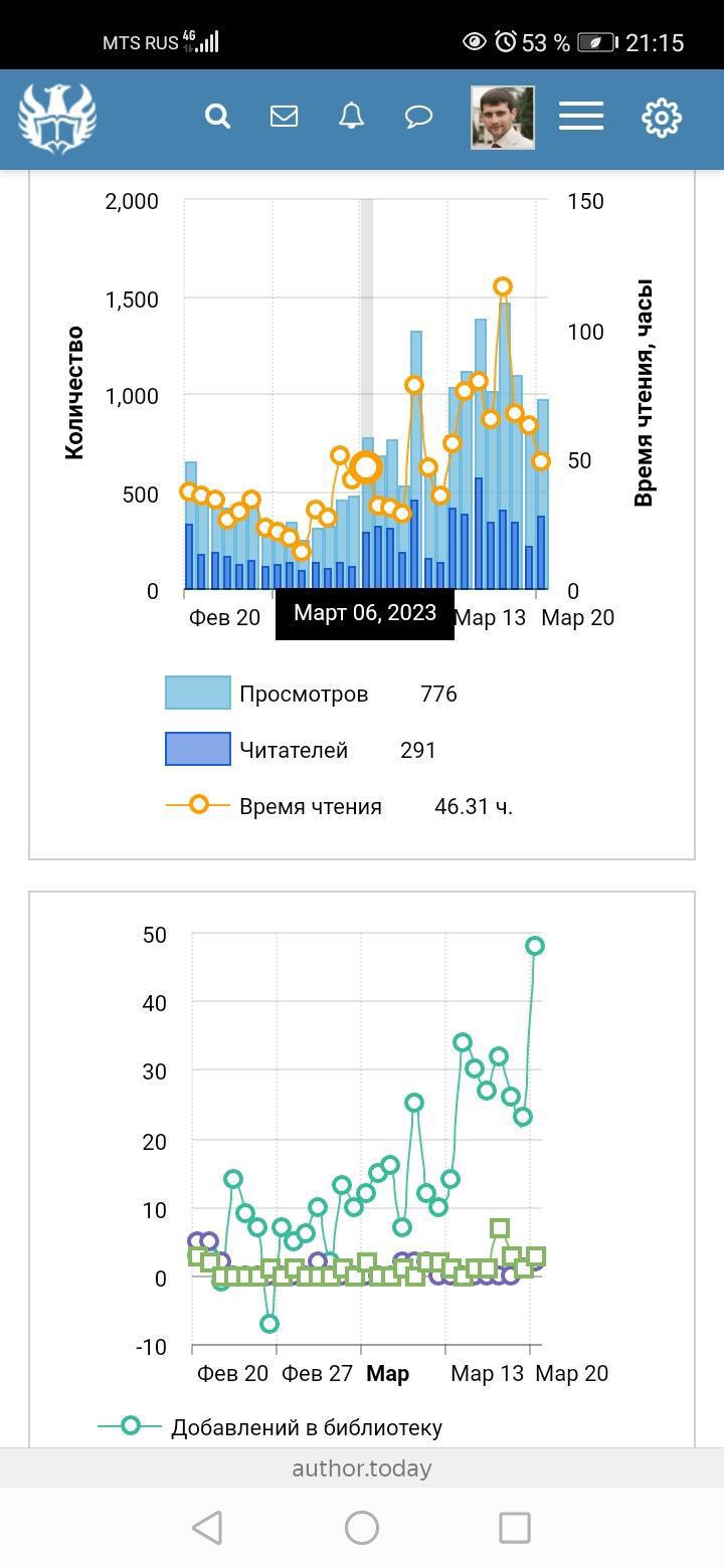 Для сравнения, читательская активность в динамике за месячный период, с середины которого (6 марта) стартовала реклама. Так сказать, для наглядности: