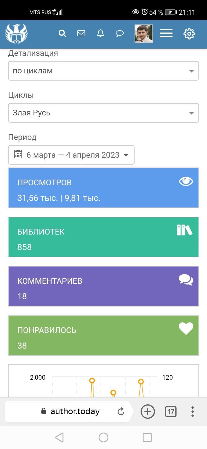 Так, однако, было до сентября прошлого года, после которого я не досчитался примерно 400 читателей и практически перестал выходить в горячие новинки - последний прорыв состоялся с романом "Злая Русь. Схватка" ещё в декабре, да и то ненадолго.