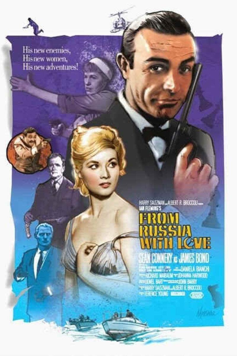 Вот она, русская красавица Татьяна Романова на афише того самого фильма "Из России с любовью". В роли Бонда Шон Коннери, в роли Татьяны Даниела Бланки, в 18 лет занявшая второе место на конкурсе "Мисс Вселенная", на момент съемок фильма ей 21 год.