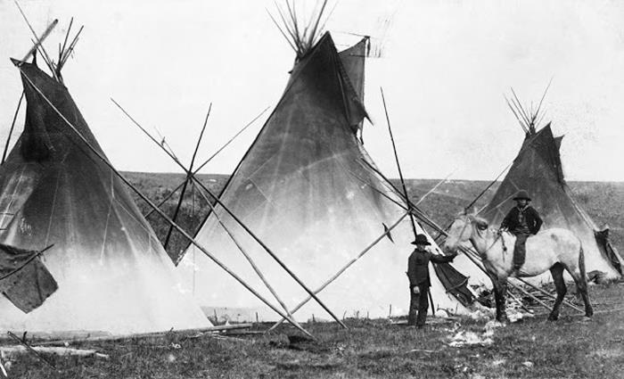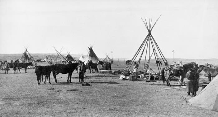 Передвижной лагерь племени Сарси около Калгари, 1887 г. Автор фото: Alex Ross.
