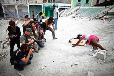 запечатлена убитая полицией Порт-о-Пренса (Гаити) 19 января 2010 года несчастная 14-летняя Фабьен Шерисма, укравшая из магазина после страшного землетрясения пару пластиковых стульев и несколько картинок в рамках.