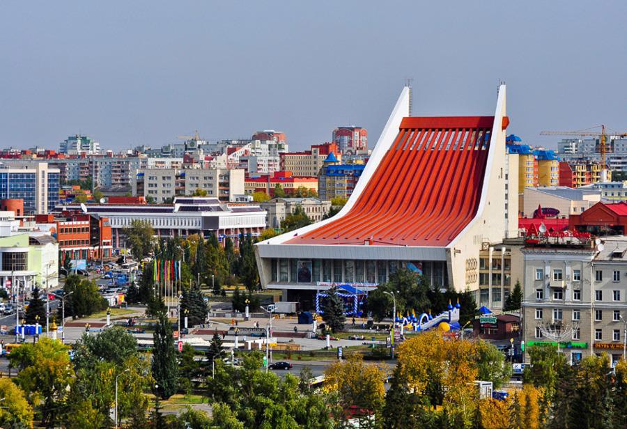 В пандан ему необычной формы здание Омского музыкального театра — «трамплин»: