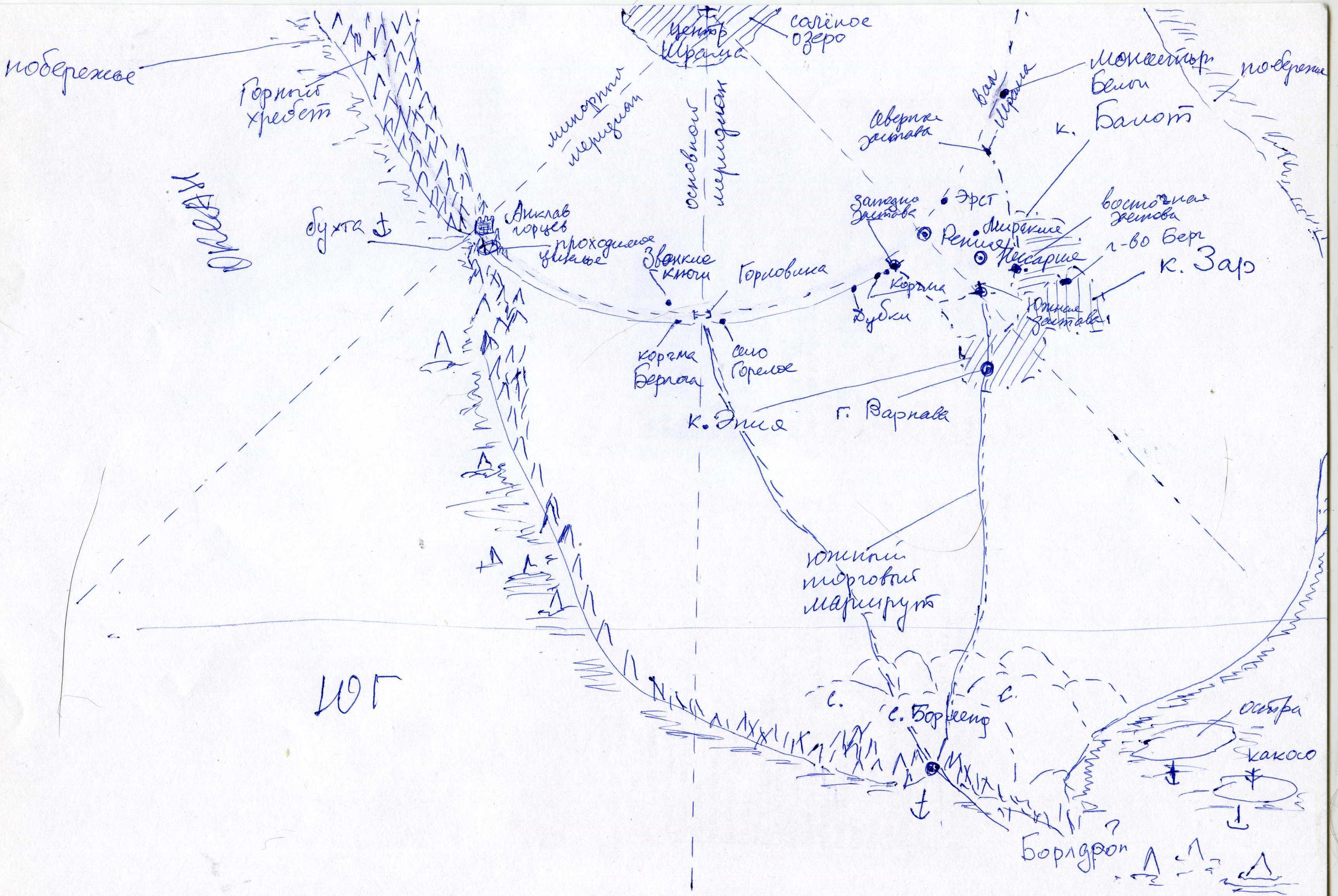 Автор: Плотников СергейВ очередной раз перерисовав карту основного материка, где разворачивается действие цикла "Как по заказу", я в очередной раз остался недоволен. Во-первый, на листе А4 решительно не помещаются мелкие детали, а во-вторых, соблюсти расстояния тоже сложно. Но... в конце концов, сколько можно? Отослал скан Павлу Копченову, дальше будем вместе вносить всплывающие правки. А они, скорее всего будут. Но в первом приближении - место действия книг выглядит вот так: