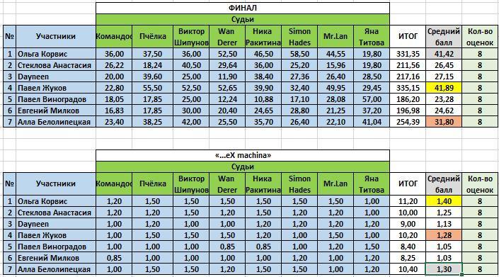 Всем привет!!! Вот и пролетел месяц с тех пор, как стартовали вторые байки На этот раз участников было 31 и я решил поэкспериментировать с тремя этапами... Не знаю как вам, а мне дико понравилось!!! Каждый этап преподносил свои сюрпризы. Не скажу, что все переворачивалось с ног на голову, но нервам, с каждой оценкой, было щекотно На каждом этапе, до последнего отзыва сохранялась интрига: "кто-же пройдет дальше?" | ![]() |
