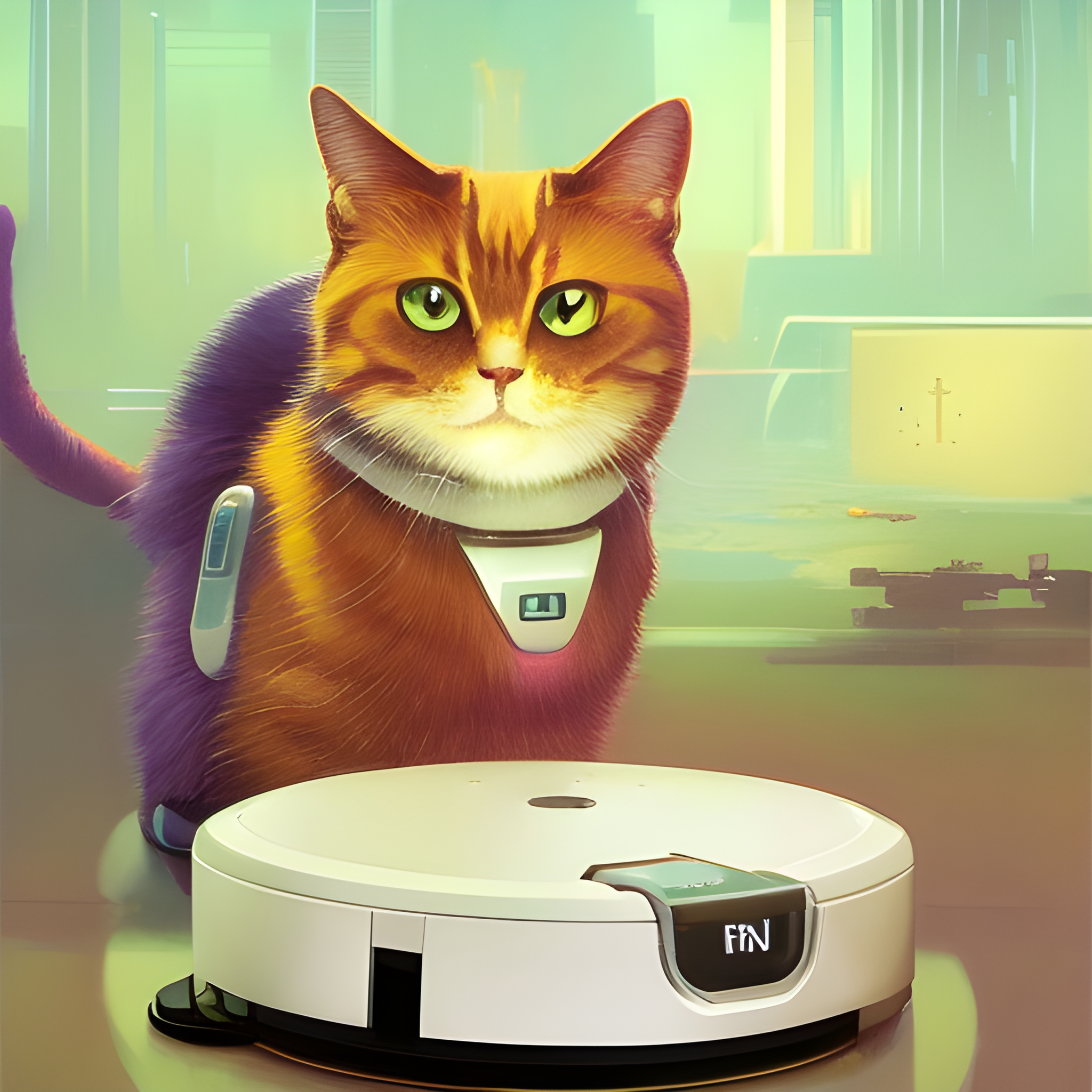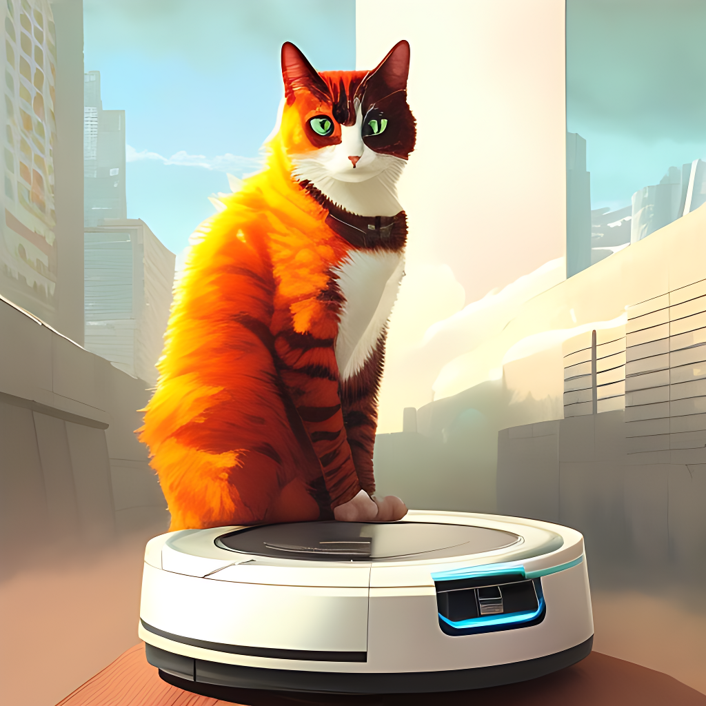P.S. А тут я помучила нейронку на предмет иллюстрации. Честно говоря, долго мучить пришлось. Кот и пылесос в её понятии видно вещи несочетаемые.