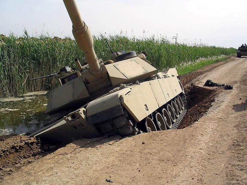Она находится в Царском селе среди руин Баболовского дворца. Поэтому «правильное» название этого изделия – баболовская чаша. Ёмкость попала в книгу рекордов Гиннеса, а вот в список музейных экспонатов почему-то не попала. Если верить писанному, которому верить, вообще говоря, не рекомендуют, то для её изготовления с финских островов через болота приволокли гранитную глыбу весом 160 тонн. Уже забавно – и как, интересно? Только не нужно говорить про то, как брёвнышки подкладывали и на других катили. Поясню. Вот фотография неудачной поездки танка "Абрамс" весом около 65 тонн (всего-то!) на очень широких гусеницах. Однако дорога не выдержала...