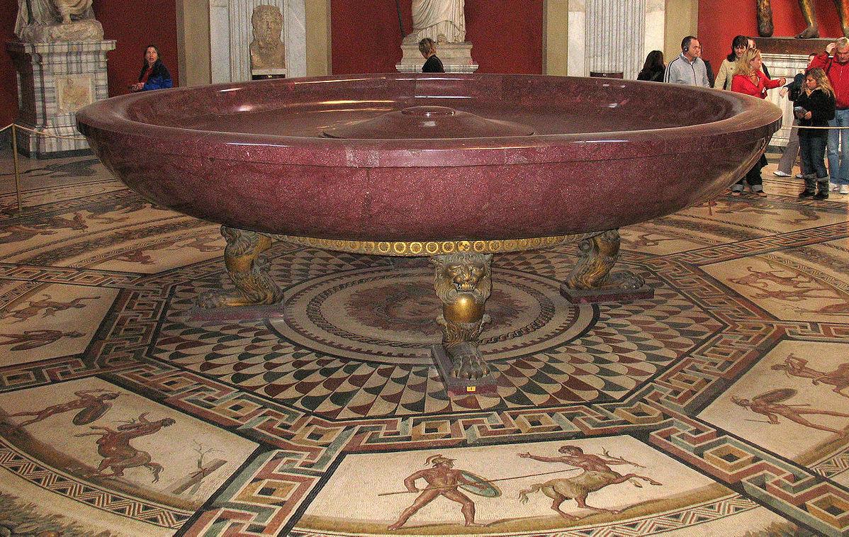 Может правда, а может просто врут, чтобы цену набить, кто ж их проверит? Мне так в это с трудом верится. Слишком много лет прошло в войнах, пожарах, катаклизмах всяких природных, а на ванне этой ни царапинки. И даже страшные варвары города разрушали, а её берегли изо всех своих диких сил. Верите? Ладно, идём дальше. Вот Порфировая ванна из Ватикана: