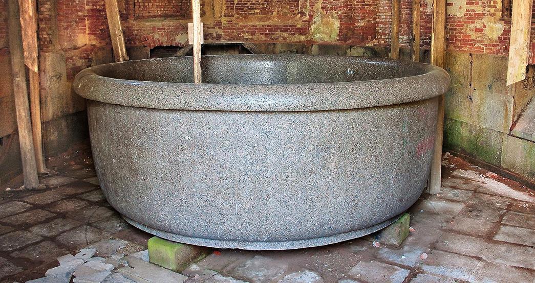 А вот это и есть самое интересное в этом вопросе. Они могли и сделали! Вот только как они это сделали? Сейчас по этому поводу идут нешуточные баталии среди специалистов. Можно, конечно, тупо бухтеть про древнее камнерезное искусство, утраченное, разумеется. Можно рассказывать про крепостных крестьян, которых согнала в новую столицу воля взбалмошного монарха, правившего тогда в Русской земле. И даже искренне поверить в то, что эти самые крестьяне вдруг по приказу монарха превратились в каменщиков, архитекторов, мастеров-камнерезов, которые притащили по болотам из дальних далей огромные скалы, которые легко, непринуждённо и с великой точностью изготовили колонные для дворцов, статуи, украшения, вазы… и ванны тоже. Да ещё не просто ванны, а даже самую большую известную ванну, которую называют сейчас Царь-ванной.