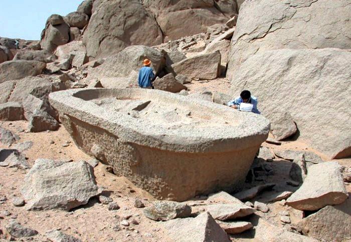 Она сделана… внимание… (барабанная дробь)… думаете в «древнериме»?... думаете в Питере? Ну, хватит. В Египте эта фотка сделана, в наше время. Да, господа, перед нами явная заготовка этих самых ванн, которые и в Ватикане, и уж, само-собой, в Питере. Чтобы совсем сомнений не было, вот ещё одна фотка. На ней есть уже заготовки, где потом будут вырезаны эти самые кольца и это самое лицо с длинными волосами «непоймикого». Вот только один нюанс – не известно, когда она сделана, точнее не сделана. Так что «аргумент» с подвохом.
