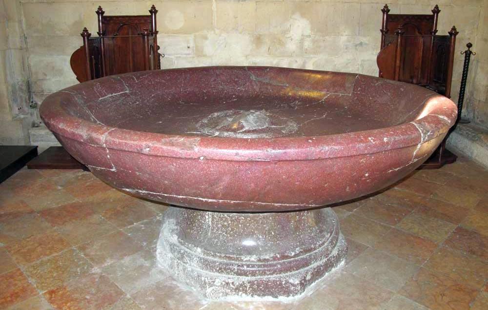 Ну, здесь-то всё проще, разумеется, возле неё ведь видимо вся Святая Троица охраняет для какого-то Лешего. Почему для него? Ну, как… а где-нибудь в Священном писании разве сказано, чтобы в ней дева Мария купалась или ещё кто-нибудь из Святого семейства? Нет. Тогда эта гипотеза ничем не хуже других, тем более что никаких «святых знаков» христианского толка на ней вроде бы нет. Да и на полу тоже картинок, располагающих к вере Христовой что-то не заметно. В том же Ватикане и другие каменные ванны есть. Вот, например, такая: