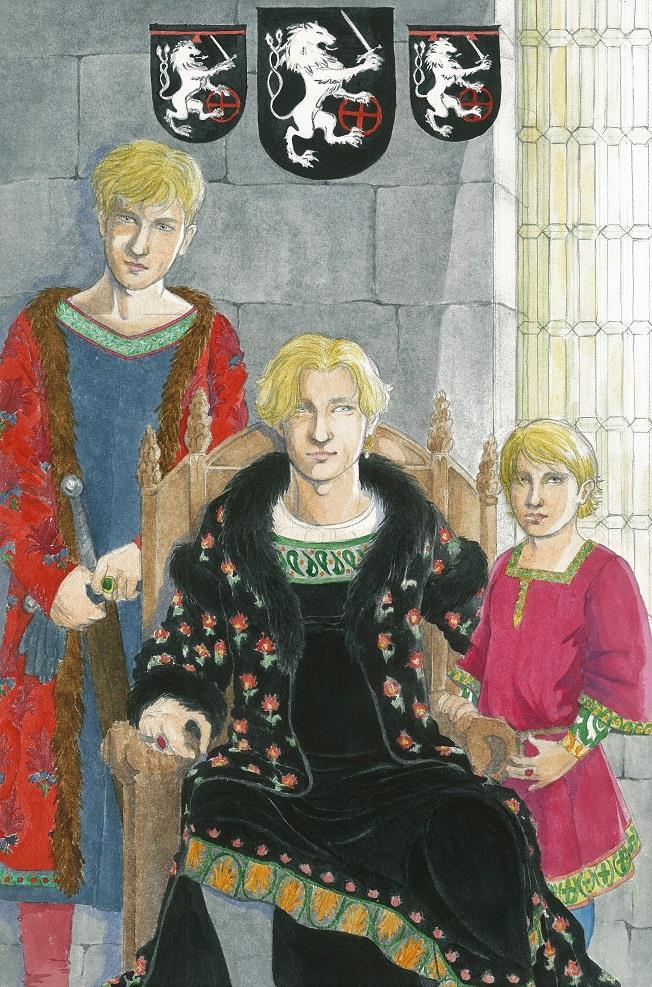 Через некоторое время в зале появились Вильберт и госпожа Экеспарре. Она вела Юргена за руку; Отто, как и подобает принцу, шел впереди, хмурый и недовольный. Рукав его красной туники был испачкан углем.