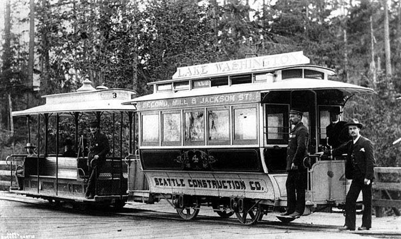 При поддержке таких людей как Артур Денни и Томас Берк, Фрэнк Осгуд открыл первый трамвай в Сиэтле в сентябре 1884 года. Приводился он в движение лошадьми, проще говоря это были конки и называли их «сеносжигатели», стоил никель за поездку и курсировал по 2-й авеню. Спустя три года заработала первая канатная дорога и шла от Пионерской площади до Лески. Затем в 1889 году Осгуд создал первый электрический трамвай, и система быстро расширилась до 22 независимых линий.