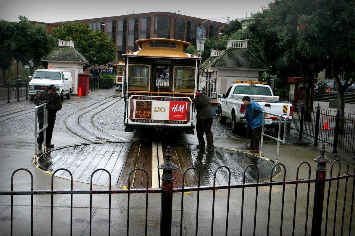 Да, а водителей канатного трамвая называют грипмэн (gripman)! С каким достоинством они запечатлены на фотографиях. Почти как машинисты у паровоза! А ведь разница лишь в том, что этот «колёсник» поменьше и ходит прямо по улицам города