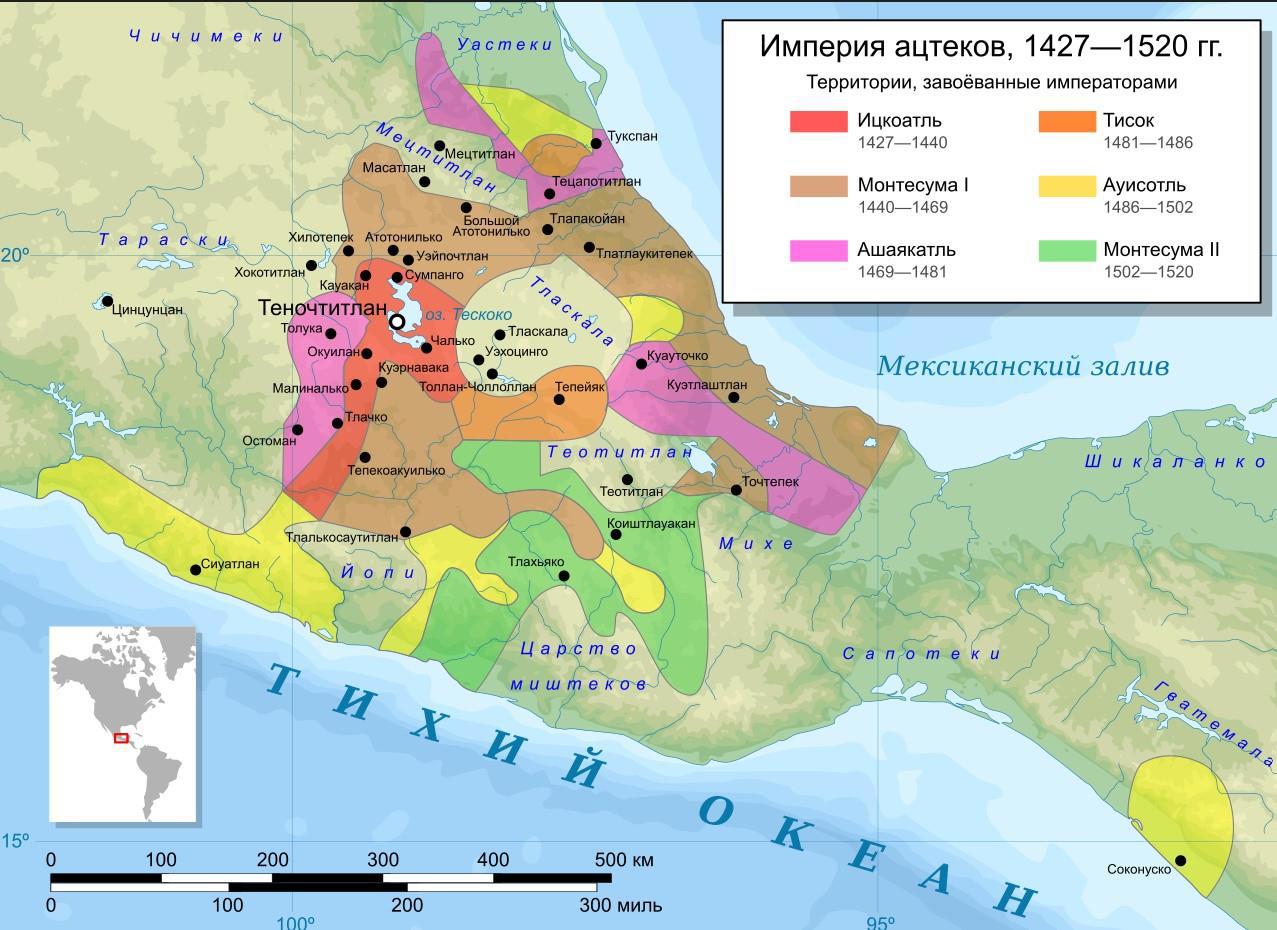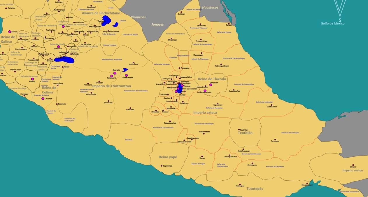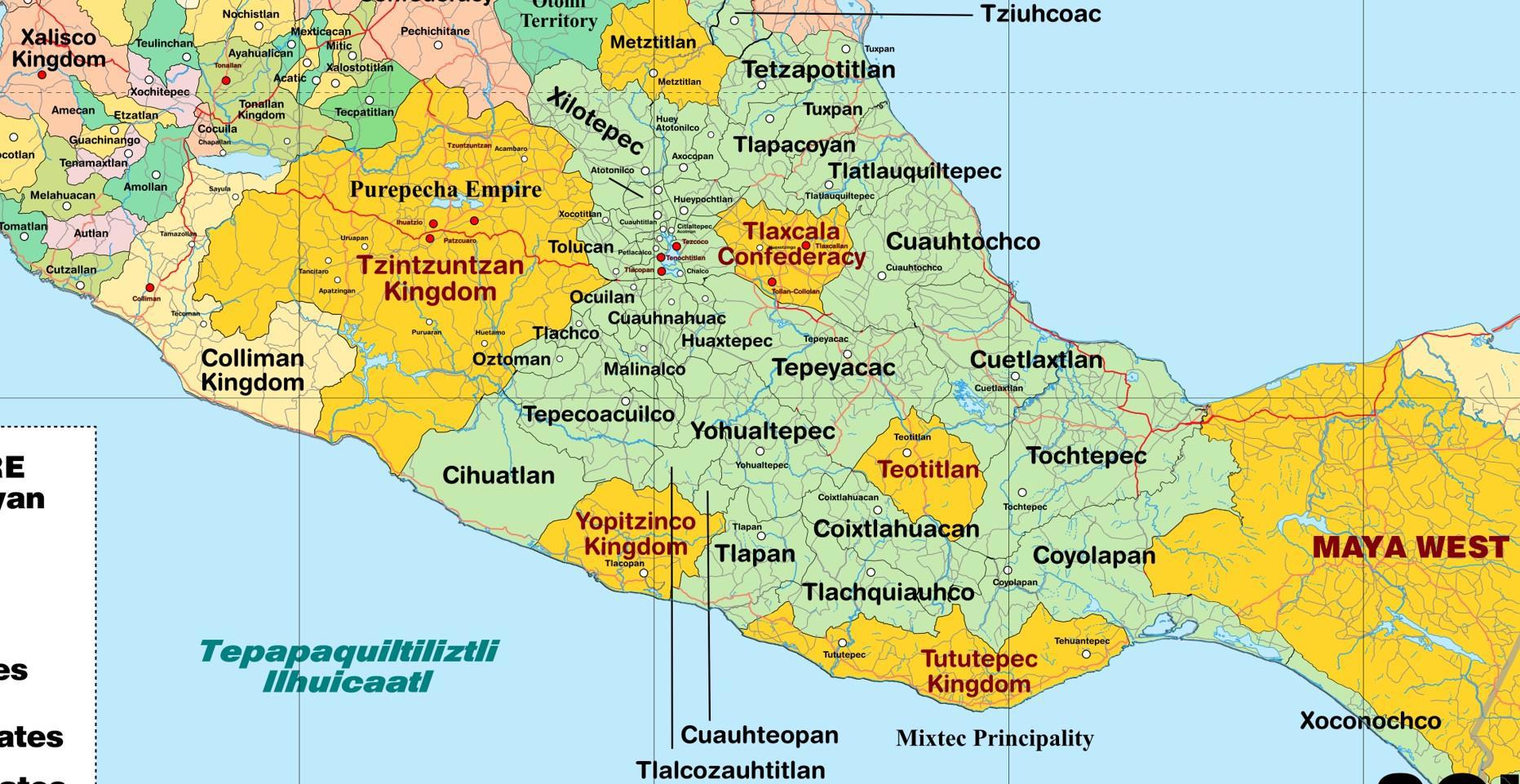 Даже поверхностное ознакомление с ЙОПИ говорит, что ребята были не столь примитивны, как о них написал Василий. Но идем дальше. Взглянем на карты. Все они обычно рисуют нам максимальную территорию империи астеков и оставляют за скобками границы народов ДО всех этих завоеваний.
