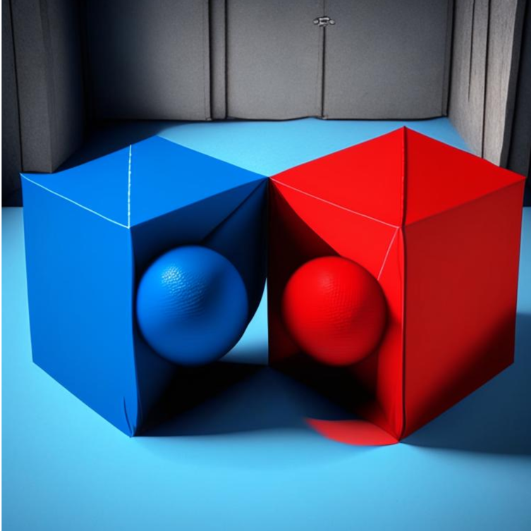 Почему быстрее нельзя, есть же квантовая телепортация? Ну, она действительно есть, и использует явление, известное как квантовая запутанность. Однако никакой информации за счет нее передать не получится. Показать это просто. Вообще, что такое квантовая запутанность? Вот есть у нас частица А и частица Б. Если они квантово запутаны, то это значит, что состояние А можно однозначно определить через состояние Б. Как именно? Представьте, что у вас есть две закрытых коробки. Вы точно знаете, что в одной лежит красный шарик, а в другой - синий.