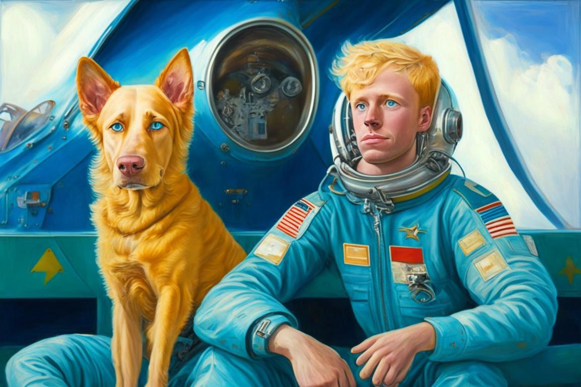 Улыбнитесь. Это тоже запрос к нейросети на пилота космического корабля. С собакой) Судя по дырке, корабль они курочили вдвоем)