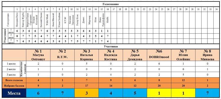 Также большое спасибо участнику игры-марафона Алексею Дмитриеву за таблицу с результатами голосования.