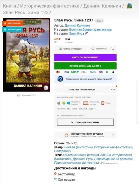 Безусловно, если вопрос станет ребром, или - или, то конечно самиздат. Тут я получаю в моменте гораздо больше денег... Ну и пара слов о специализации "Ленинграда": это, прежде всего, военная фантастика по Отечественной истории, также это фэнтези, но в меньшей степени. Меня, например, радует, что заходят именно патриотического содержания книги. "Альфа" для сравнения имевшие на том же ЛитРес успех "Игру не для всех.1941" и "Злую Русь. Зима 1237" не взяли. Никакого пояснения по отказам не было. Так что мотайте на ус...