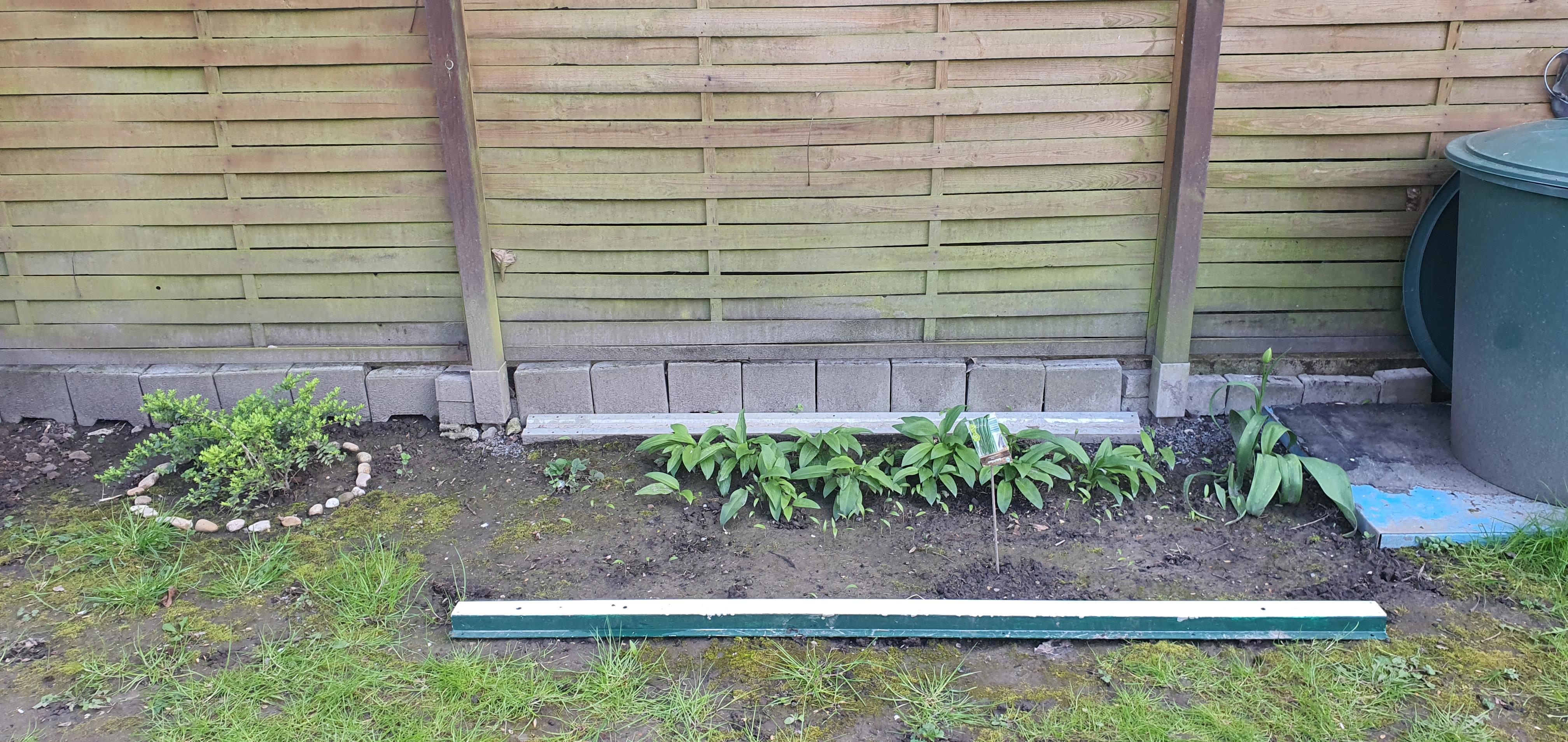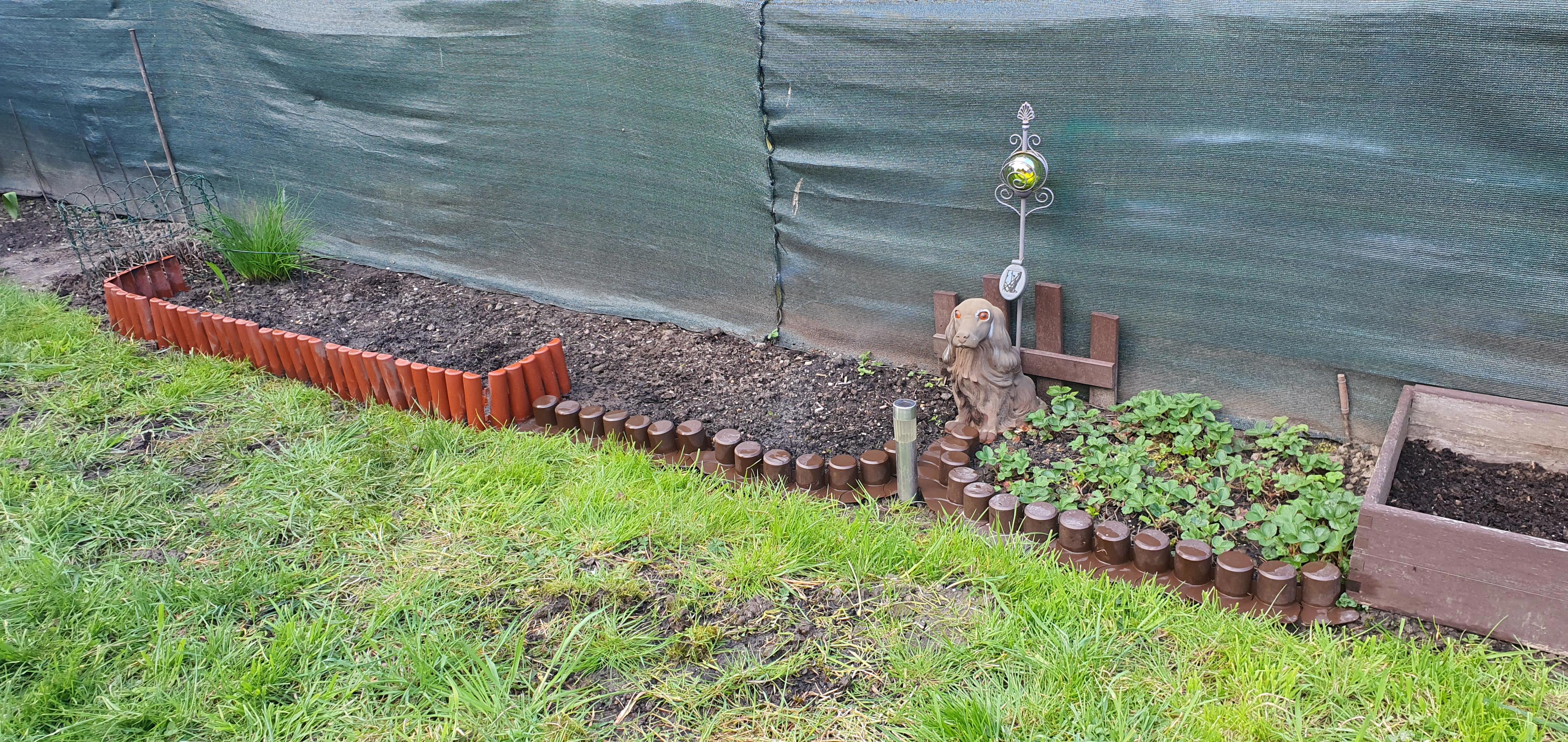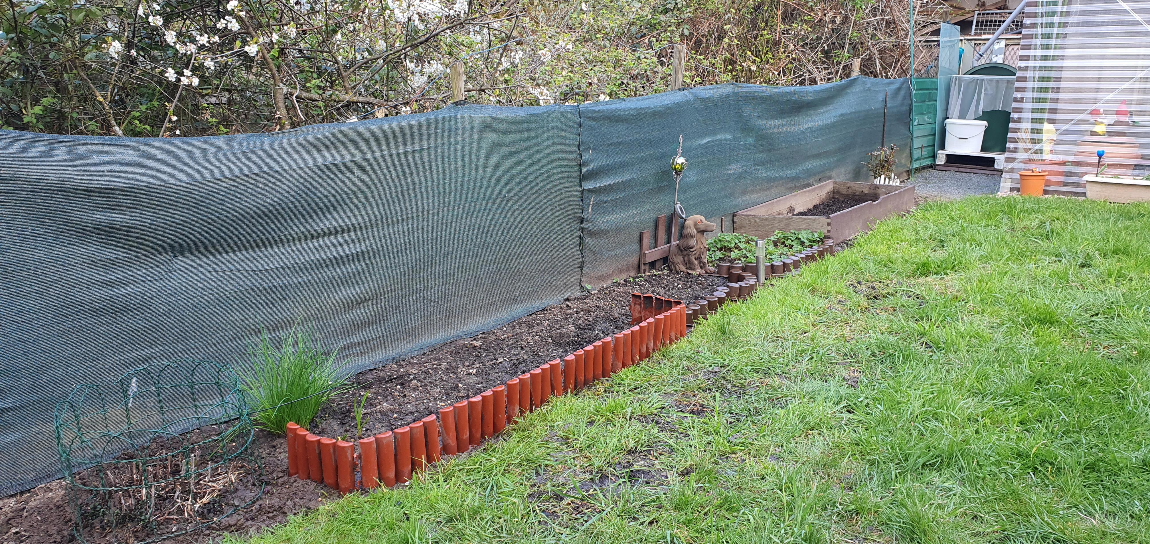 Пока временно мини заборчик сюда поставила, планирую грядки сделать из одного материала.