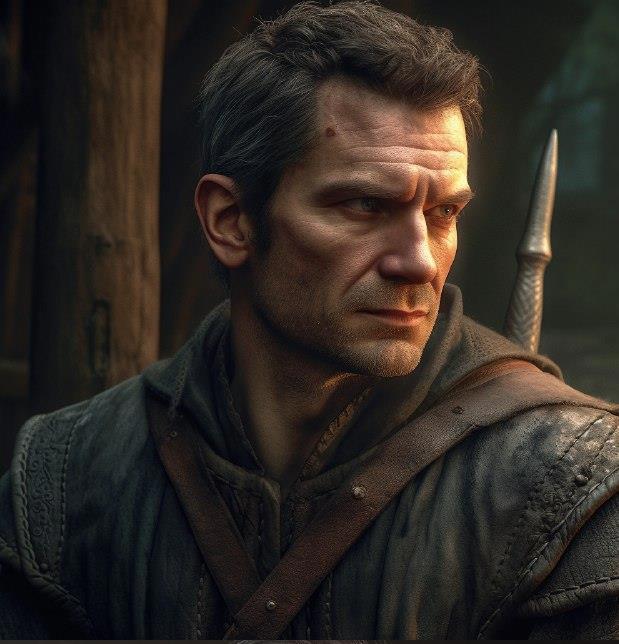 А на последок картинку вам с нейросети. Пытался изобразить с ее помощью Сарета, но программа стоически игнорирует Y-образный шрам справа на щеке.