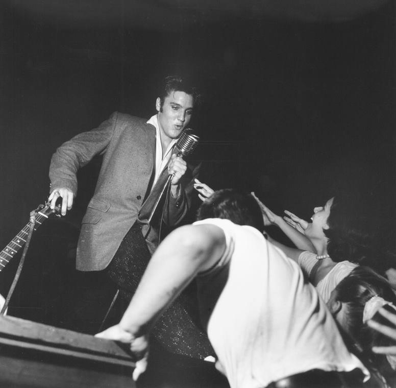 При первых звуках песни зал сначала как бы затаился, приготовившись вкушать Прекрасное, но уже через пару секунд из разных концов аудитории послышались стоны, всхлипы и взвизги, местами переходящие в крики и вопли. В те мгновения, когда зрители молчали, мне казалось, что я чувствую, как по залу течёт волшебство — густой липкий джем непристойного удовольствия. Уже на первой песне Элвис явно чувствовал, что вязнет в этом джеме, поэтому движения его ног напоминали движение лопастей погружного миксера с нашей кухни, застревающих в чрезмерно вязком тесте. Артист дёргал бёдрами, как бы стараясь высвободить ноги из толщи производимого им же восторга, но сам увязал только крепче.