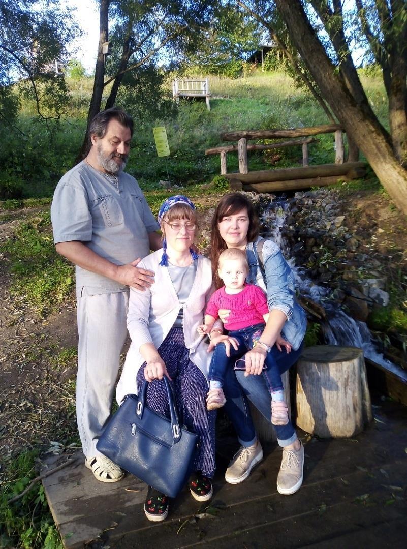 На фото слева-направо: я, жена, невестка Юля и внучка Ульяна, д. Русиново Боровского района Калужской области, 2019 год)