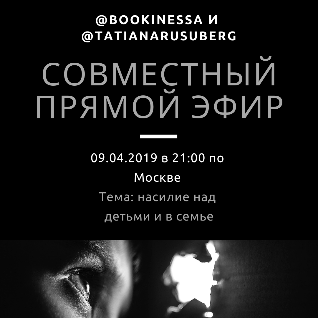 Автор: Татьяна РусубергНапоминаю: пообщаться ос мной и с книжным блогером @bookinessa можно будет сегодня в 21:00 по Москве вот тут https://www.instagram.com/tatianarusuberg/ Помимо дел книжных мы будем говорить о насилии в семье и насилии по отнощению к детям, т.к. это - сквозная тема моих последних книг. Эфир будет происходить в форме диалога, к которому смогут подключиться зрители. Кстати, еще не поздно задать свои вопросы к эфиру!