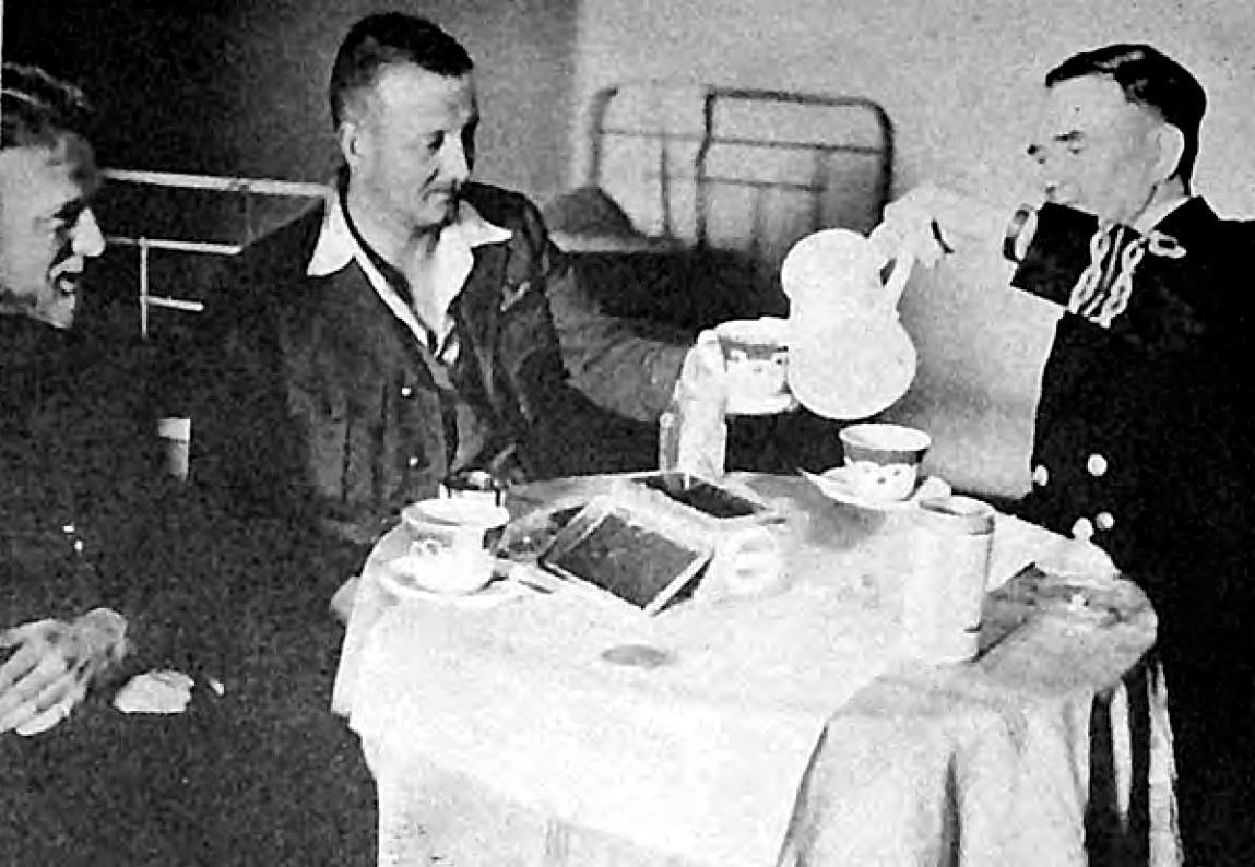 Чаепитие. С чаем и кексом трое офицеров коротают время.