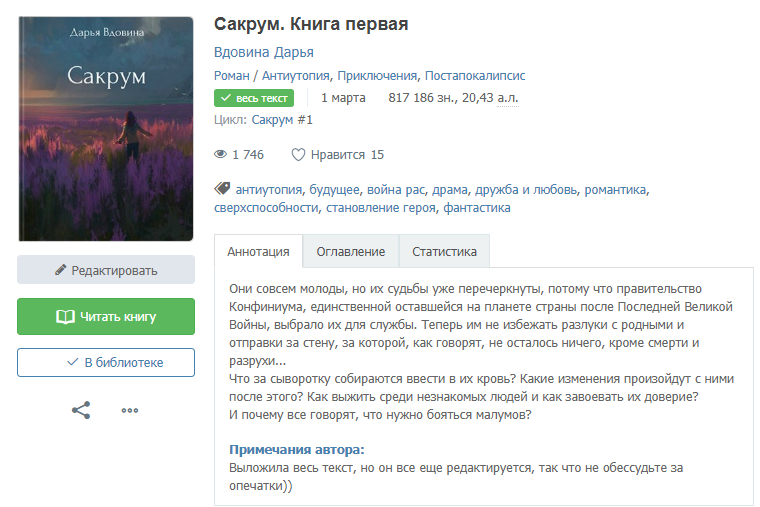 Автор: Вдовина ДарьяВыложила полный текст романа-антиутопии "Сакрум". Всем интересующимся - добро пожаловать! :) Мой первый опыт на данной площадке, очень радует теплый прием здешних обитателей