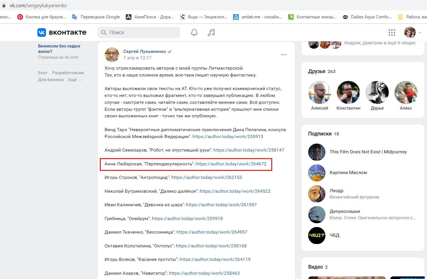 Пост! Сергея Лукьяненко, на его странице ВКонтакте. И там тоже моя фамилия! В списке из одиннадцати человек. Ссылка на мою книгу ведет на портал Автор Тудей. Так, перехожу. Опа-на! На обложке рыжеволосый парень, название – хрен выговоришь. Пер-пен-ди-ку-ляр-ность. Твою-ж… И фамилия моя. Это я написала?