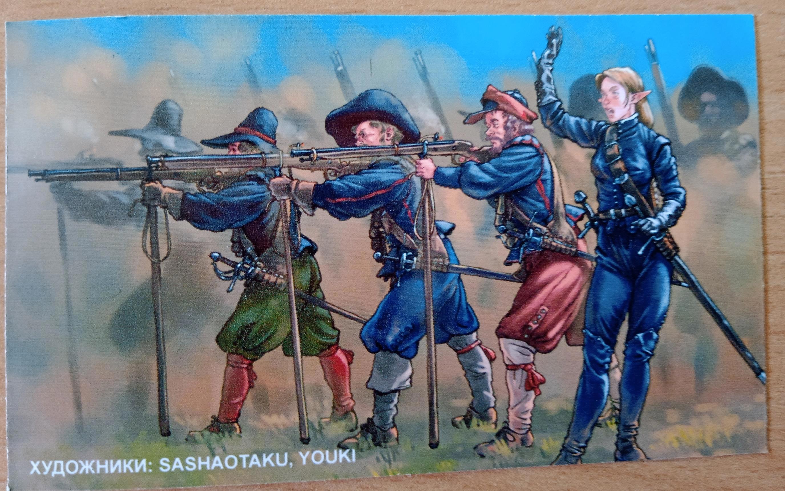 На оборотной - полный рисунок Александра Прибылова с леди-капитаном Литэль и ники художников, чьи рисунки использованы в визитке. Я решил, что это удобнее, чем писать полные имена.